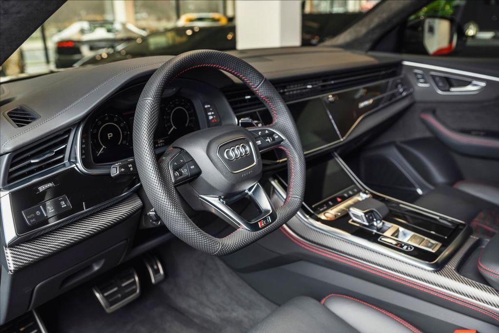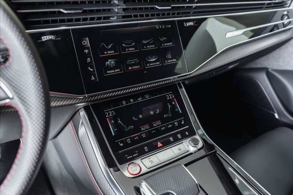 | Doplňující popis: | Parkovací asistent, RS sportovní výfukový systém, Tažné zařízení, Panoramatické dvoudílné strešní okno, Střešní ližiny v černé barvě, Vyhřívání předních a zadních sedadel, Odvětrávání sedadel vpředu, Boční airbagy vzadu, Kruhy Audi a loga RS Q8 v lesklé černé, Dekorace matný karbon Kepr, Audi virtual cockpit plus, Kryty vnějších zpětných zrcátek v černé, Bang & Olufsen Premium Sound System s 3D, Paket černé optiky, Servomechanické dovírání dveří, Brzdy RS ocelové s leskle červenými třmeny, Asistenční paket City, Sedadla RS sportovní vpředu v kůži, Komfortní klíč s funkcí Safelock, Světlomety HD Matrix LED, Plné lakování, USB porty s nabíjecí funkcí pro zadní | |