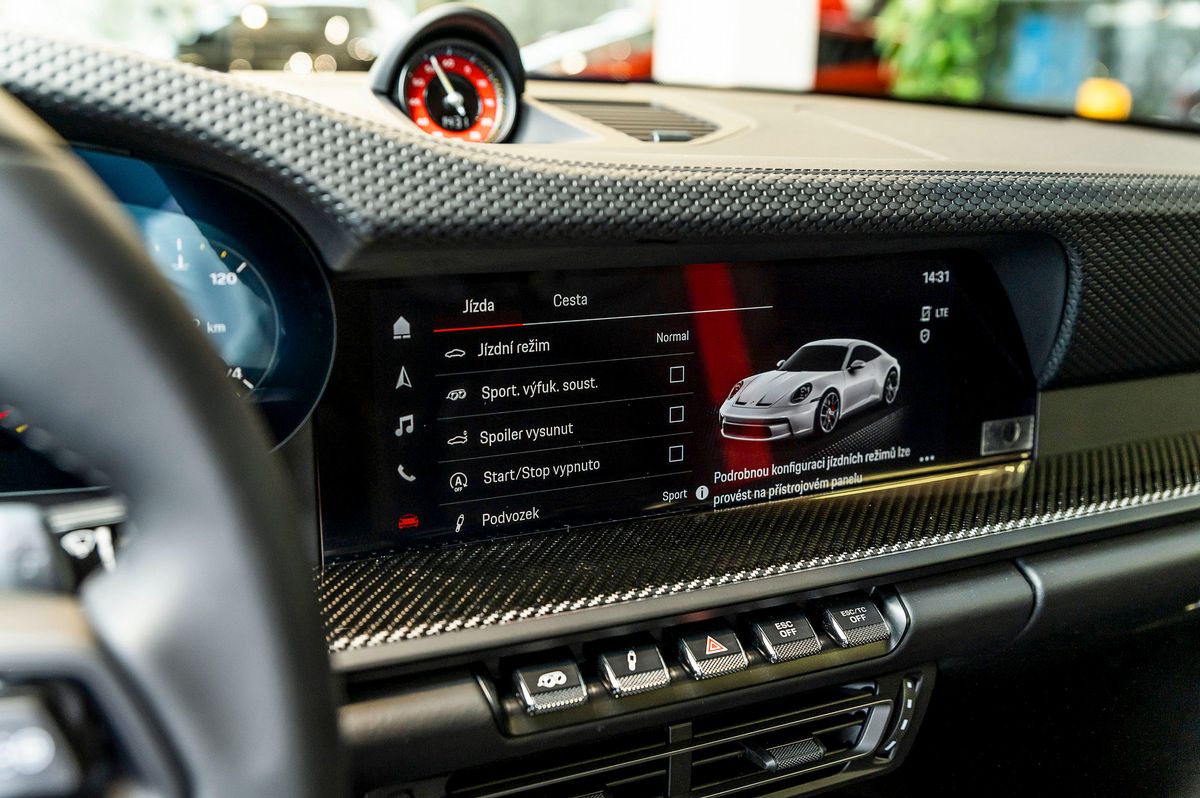 | Doplňující popis: | Vnější/vnitřní zpětná zrcátka s automatickým stmíváním a dešťovým senzorem, Asistenční systém pro jízdu: Park Assist s couvací kamerou, Vozidlo bez označení modelu, Hlavní světlomety LED včetně Porsche Dynamic Light System (PDLS), Interiérový paket dekorativní prošívání v různých barvách, Interiérový paket: Carbon high-gloss, Palivová nádrž: 90 ltr, Zdvihový systém přední nápravy, barevné bezpečnostní pásy, audiosystém BOSE, paket Sport Chrono, systém sledování vozidla Plus (PVTS Plus), přední skořepinová sedadla | |
