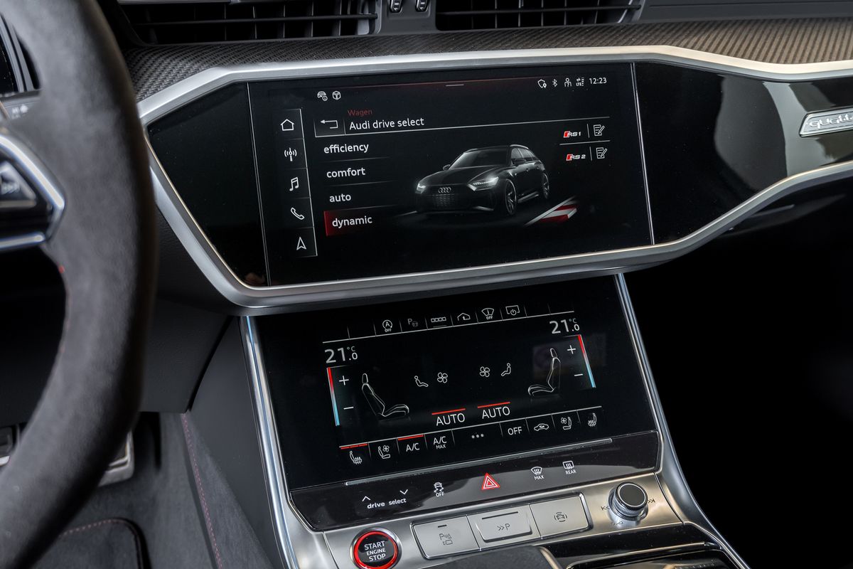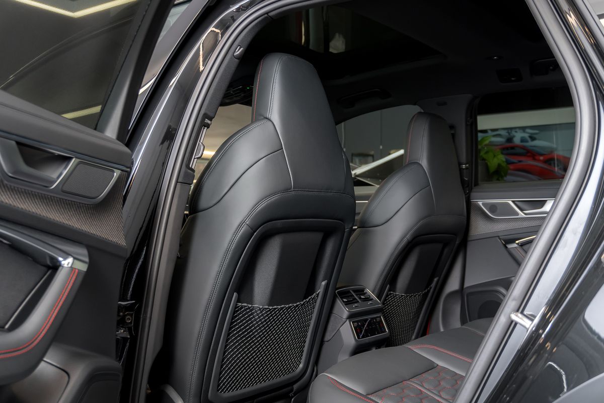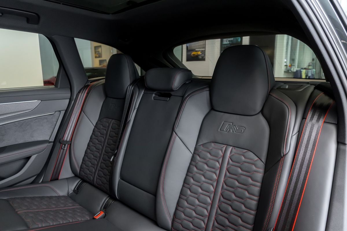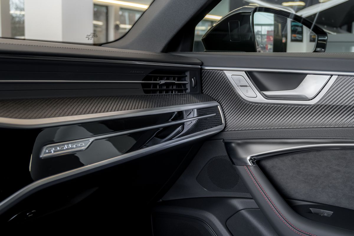 | Doplňující popis: | Asistenční paket Parkování s dálkovým parkovacím asistentem, Asistenční paket City, Asistenční paket Tour, Audi connect key, Audi kruhy a nápisy v lesklé černé barvě, Vnější zpětná zrcátka vyhřívaná a sklopná s automatickým stmíváním a pamětí, Vnější zpětná zrcátka černá, Bluetooth hands-free systém s rozpoznáváním hlasu (Audi Phone Box), Designový paket: RS červená, Dynamic paket plus, Čelní sklo klima komfort / akustické sklo vyhřívané, Head-up displej, Interiérové obložení: Karbonové vložky, keramický brzdový systém vpředu a vzadu, červeně lakované brzdové třmeny, digitální sdružený přístroj (virtual cockpit plus) s designem RS, komfortní klíč se senzorovým otevíráním zadních dveří a alarmem proti krádeži vč. (otevírání + zavírání), kola z lehké slitiny 22 (5Y-paprsky černá matná), Matrix LED světlomety s laserovým světlem, metalický lak, černý optický paket, panoramatická střecha vpředu elektrická, vysílač pro otevírání garážových vrat (integrovaný), elektrické dovírání dveří, čalounění: Valcona perforovaná kůže voštinové prošívání - větrané, sluneční clona na oknech zadních dveří, audiosystém Bang & Olufsen, sportovní výfukový systém, sportovní odpružení RS plus s regulací tlumičů, USB porty pro nabíjení (dvojité, typ C) pro cestující vzadu, zatmavené zadní sklo (privacy glazing) | |