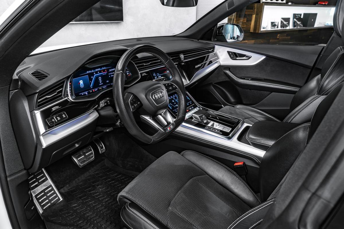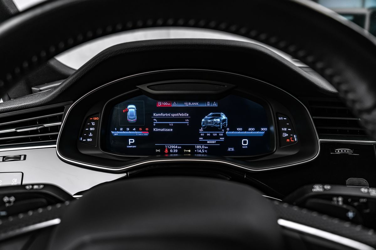 | Doplňující popis: | Ostrava, Akustická skla bočních oken dveří, Asistenční paket Tour, Audi smartphone interface, Elektricky nastavitelná, vyhřívaná a sklopná vnější zpětná zrcátka s automatickým stmíváním a pamětí, Černá vnější zpětná zrcátka, Bluetooth hands-free systém s rozpoznáváním hlasu (Audi Phone Box), Červeně lakované brzdové třmeny, Černé střešní ližiny, Zařízení proti krádeži kol (zámky ráfků), Asistenční systém pro jízdu: Asistent změny jízdního pruhu (Side Assist) vč. Audi pre sense rear, Podvozkový paket: Advanced, HD Matrix LED světlomety, Interiér: Interiérové prvky v kůži dole, Kamerový systém pro prostorový výhled (Top View), Komfortní klíč se senzorem ovládaným otevíráním zadních dveří a alarmem proti krádeži vč. (otevření + zavření), variabilně nastavitelné opěrky hlavy, volant (sportovní/kožený - tříramenný, dole zploštělý) s multifunkcí a funkcí řazení, kola z lehké slitiny 10x22 (5 paprsků do V, hvězdicový design, antracitově černá lesklá, vysoký lesk), metalický lak, černý optický paket, dělené/sklopné opěradlo zadních sedadel, posuvné (40:20:40), elektrické zamykání dveří, elektricky nastavitelná přední sedadla (vlevo s pamětí), audiosystém Bang & Olufsen. | |