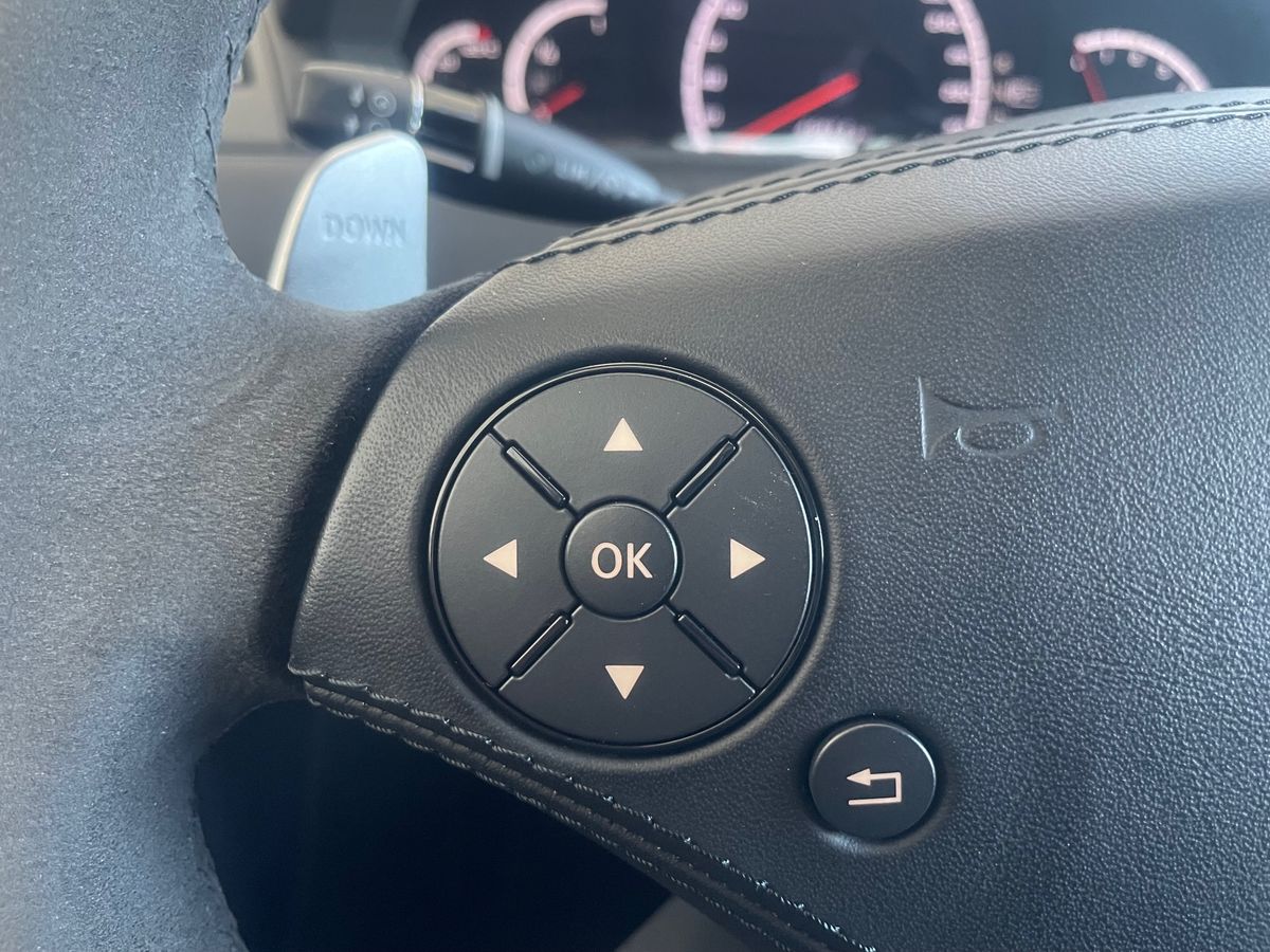 | Nadstandardní výbava: | bluetooth, senzor tlaku v pneumatikách, bezklíčové odemykání, satelitní navigace, multifunkční volant, nastavitelný volant, výškově nastavitelná sedadla, paměť nastavení sedadla řidiče, vyhřívaná sedadla, odvětrávaná sedadla, sportovní sedadla, el. seřiditelná sedadla, denní svícení, alu kola, el. zrcátka, vyhřívaná zrcátka, řazení pádly pod volantem, pérování vzduch, aut. klimatizace, panoramatická střecha, xenonové světlomety, centrál dálkový, nezávislé topení, tempomat, parkovací kamera, parkovací senzory přední, stabilizace podvozku (ESP), zadní pohon, aut. převodovka, plní 'EURO V', ABS, | |