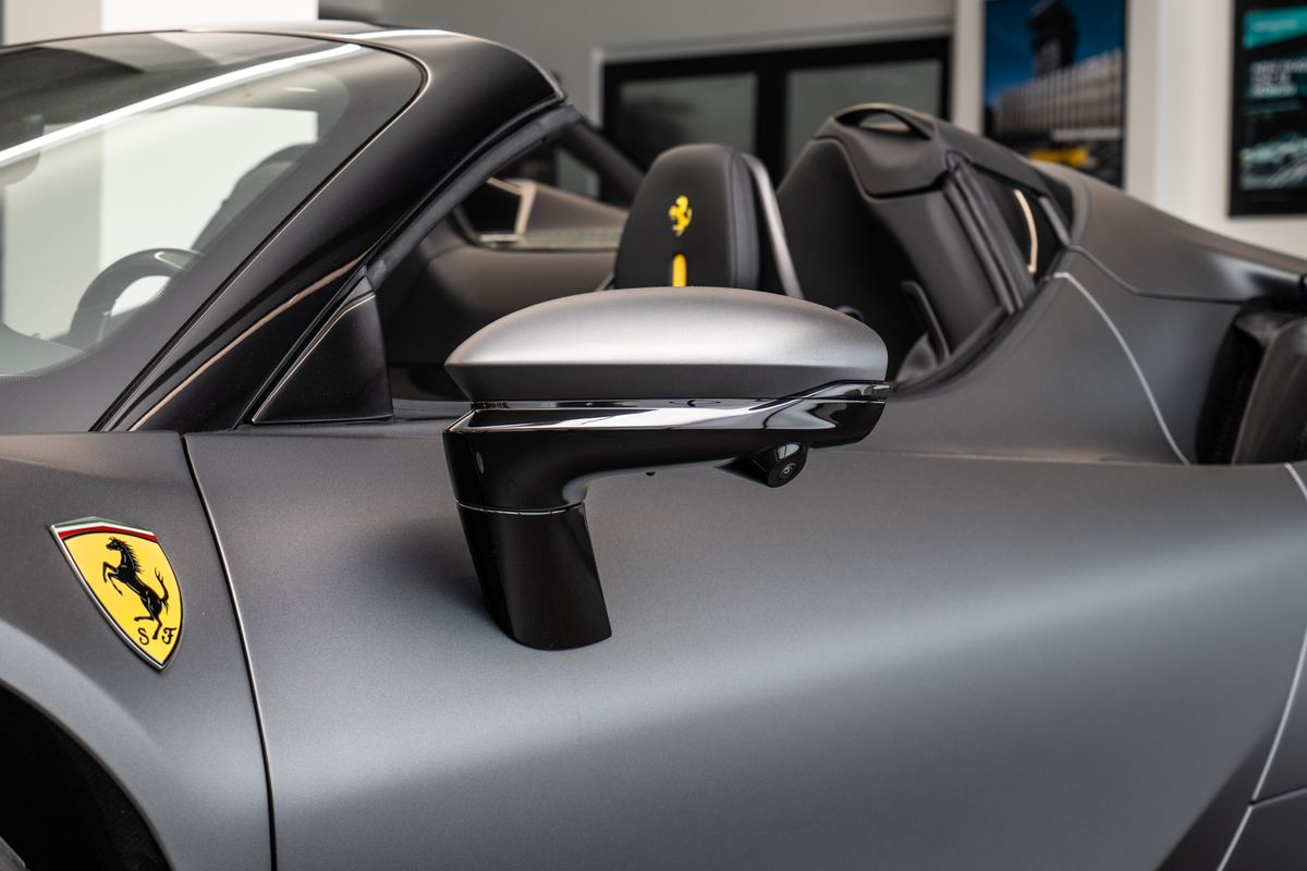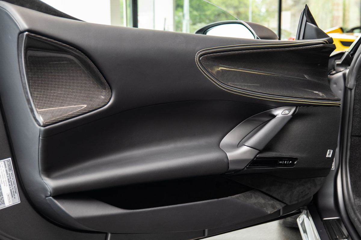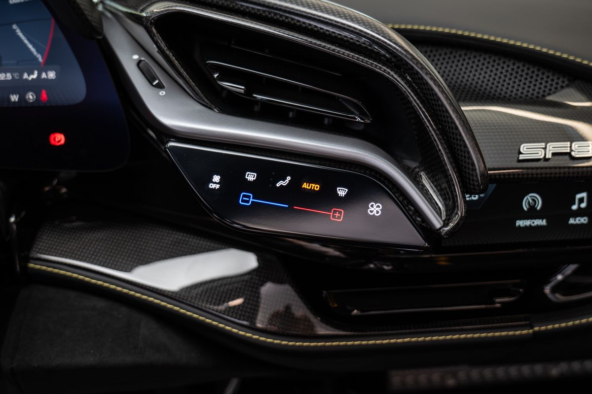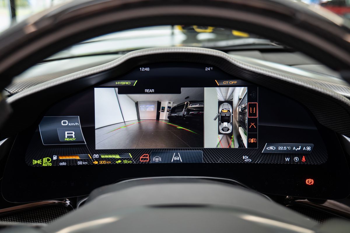 | Doplňující popis: | Přední radar s adaptivním tempomatem, Adaptivní systém předních světlometů, Středová část sedadel v černé Alcantaře, Dvoubarevná karoserie (černá Nero DS 1250), Zadní radar, Brzdové třmeny v barvě Silverstone Grey, Přední spoiler z karbonu, Zadní horní obložení z karbonu, Zadní difuzor z karbonu, Spodní kryt vozu z karbonu, Karbonové zóny na volantu s LED diodami, Karbonový kryt přístrojového panelu, Karbonové výplně dveří, Karbonové prahy dveří s logem Ferrari, Horní část středového tunelu z karbonu, Kožené detaily pro zadní spolujezdce (výbava Extrarange, kůže Giallo 113256), Dekorace „Extrarange“ z kůže Giallo 113256, Aktivované připojení MyFerrari Connect, Karbonové dekory přístrojové desky, Přední zvedání vozu (Front Lift), Vyšitý znak Cavallino na opěrkách hlavy (nití v barvě Giallo 0113), Černé koncovky výfuku, Přední spoiler z karbonu, Navigace a konektivita MyFerrari, Znak „Scuderia Ferrari“ na blatnících, Vnitřní elektrochromatická zpětná zrcátka, Přední a zadní parkovací senzory, Speciální matné barvy (Matte Grigio Silverstone), 20 kovaná kola v tmavém odstínu, Matné zlaté ráfky (Matte Gold), Závodní karbonová sedadla, Zvedák pro závodní použití, Prémiový audiosystém Hi-Fi, Rozšířená personalizace (Atelier), Barevné kontrastní prošívání (nití v barvě Giallo 0113), 360° kamera s funkcí „Surround View“, Titanové šrouby kol | |
