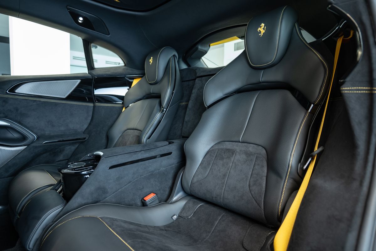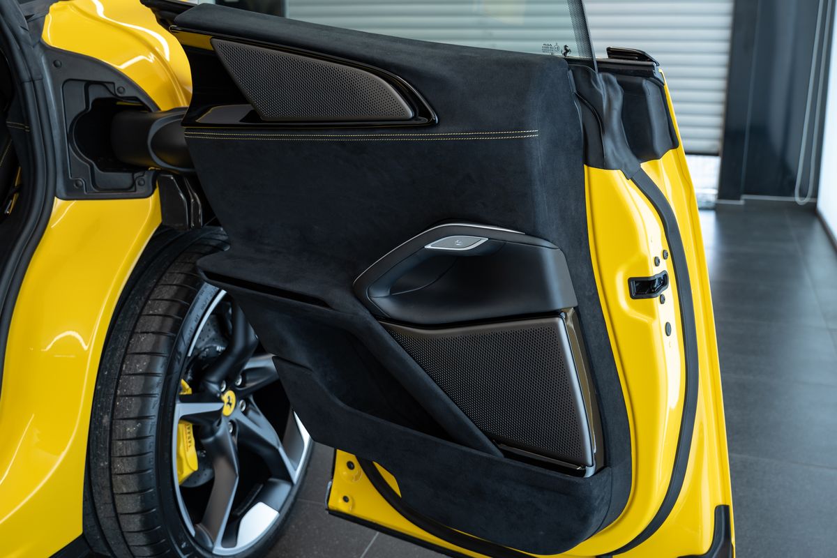 | Doplňující popis: | Číslo inzerce: ZL.XXX.PURO, Senzor kvality vzduchu, Žluté brzdové třmeny, Karbonové lemy podběhů kol, Zadní difuzor z karbonu, Karbonový kryt podvozku, Karbonové kryty vnějších zpětných zrcátek, Karbonové prahy exteriéru, MyFerrari Connect aktivováno, Barevné bezpečnostní pásy (žluté), Nouzové volání (Emergency Call), Panoramatická střecha, Zvedací systém přední nápravy (Front Lift), Vyšitý Cavallino na opěrkách hlavy (Nuovo Giallo), Černé koncovky výfuku, Karbonový přední spoiler, Sada zavazadel do zavazadlového prostoru, Masážní a ventilovaná přední sedadla, Sada originálních zimních kol Ferrari, Matně černý zadní znak Cavallino, Saténový znak Ferrari, Příprava MyFerrari Connect hardware, Karbonový volant s LED indikací, Znaky „Scuderia Ferrari“ na blatnících, Digitální vnitřní zpětné zrcátko, Otáčkoměr ve žlutém provedení, Matně černá kovaná diamantová kola, Zadní sedadla s vyhříváním, Rozhraní pro smartphone, High-End audiosystém, Speciální individuální specifikace, Speciální barevné prošívání interiéru (Nuovo Giallo), Titanové šrouby kol, Horní část prostoru spolujezdce v kůži, Bezdrátová nabíječka telefonu, Aktivní Matrix LED světlomety | |