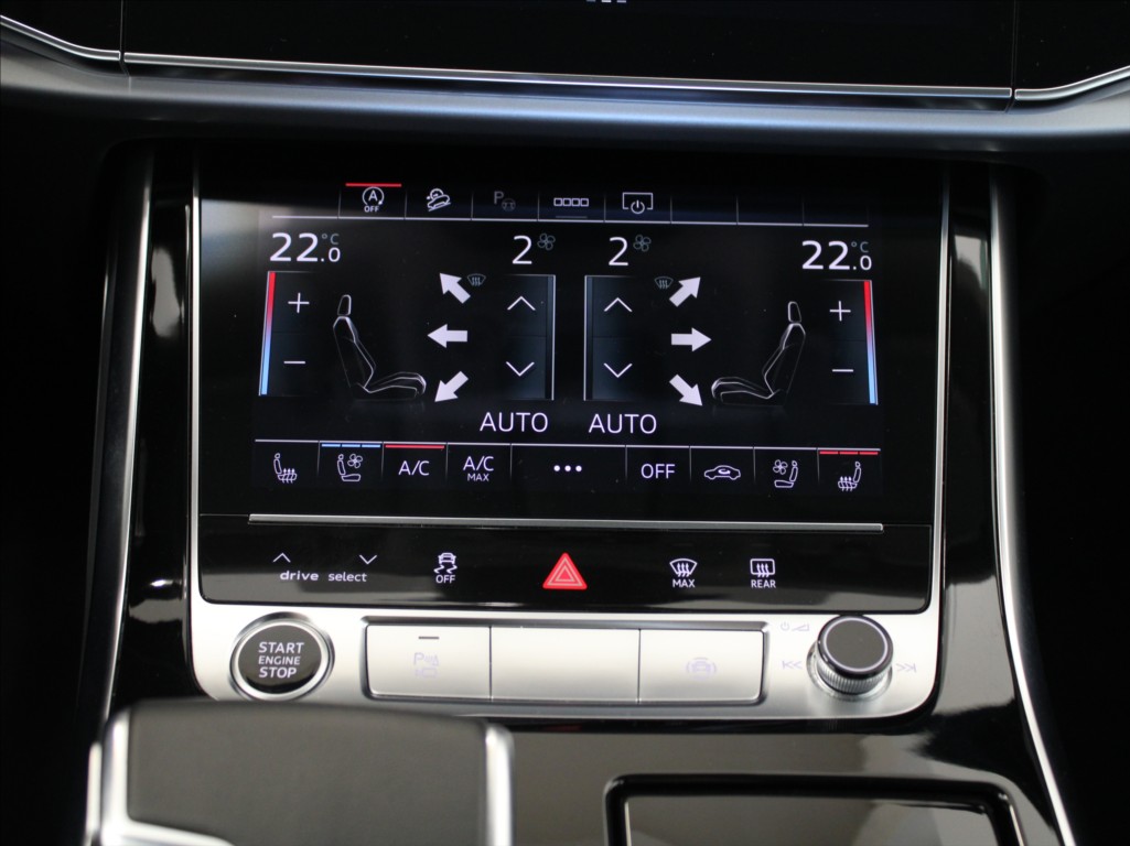 | Nadstandardní výbava: | airbag řidiče, aut. klimatizace, originál autorádio, Android Auto, Apple CarPlay, satelitní navigace, bluetooth, AUX, USB, hands free, el. okna, el. přední okna, el. zrcátka, el. sklopná zrcátka, el. víko zavazadlového prostoru, el. seřiditelná sedadla, potahy kůže, kožené čalounění, kožená sedadla, odvětrávaná sedadla, vyhřívaná sedadla, hlídání jízdního pruhu, hlídání mrtvého úhlu, multifunkční volant, parkovací senzory přední, parkovací senzory zadní, LED adaptivní světlomety, LED matrixové světlomety, parkovací kamera, senzor stěračů, senzor světel, automatické přepínání dálkových světel, adaptivní tempomat, regulace tuhosti podvozku, regulace výšky podvozku, brzdový asistent, ABS, stabilizace podvozku (ESP), protiprokluzový systém kol (ASR), aut. převodovka, denní svícení, přední světla LED, zadní světla LED, centrál dálkový, startování tlačítkem, bezklíčové startování a odemykání, paměť nastavení sedadla řidiče, tažné zařízení, sportovní paket, ambientní osvětlení interiéru, řazení pádly pod volantem, záruka, isofix, LED denní svícení, plní 'EURO VI', digitální přístrojový štít, volba jízdního režimu, pérování vzduch, hlídání provozu při couvání (RCTA), závěsné zařízení, el. tažné zařízení, bezklíčové odemykání, bezklíčové startování, pohon 4x4, 10x airbag, | |
