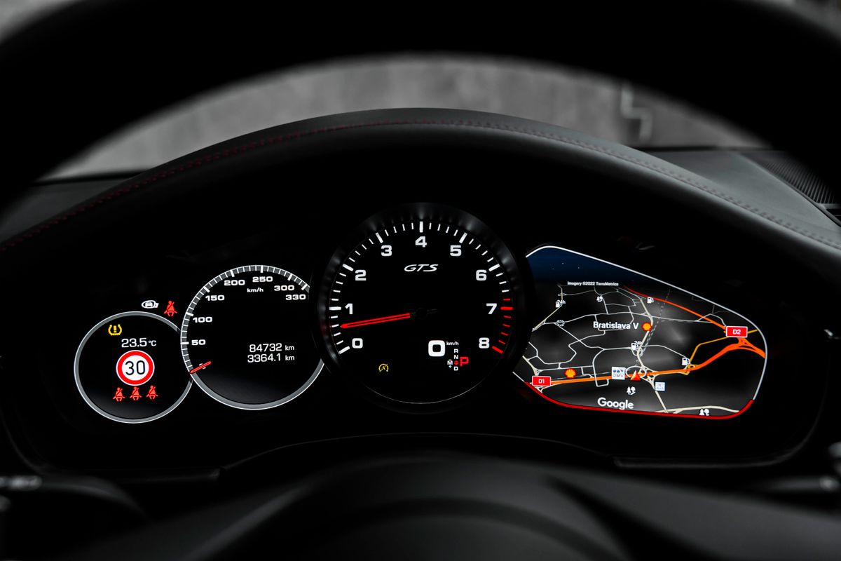 | Doplňující popis: | Bratislava, Porsche Panamera GTS Sport Turismo (2021): Exteriér: Tiefschwarzmetallic (metalická čierna) Interiér: Alcantara Komfort a asistenčné systémy vodiča Power Steering Plus – rýchlostne závislé posilňovače riadenia pre jednoduchšie manévrovanie pri nízkych rýchlostiach Adaptívny tempomat vrátane asistenta jazdy v kolóne – udržiava bezpečný odstup a podporuje poloautonómne riadenie v dopravných zápchach Porsche Entry & Drive – bezkľúčový vstup a štartovanie motora ParkAssist vrátane zobrazenia okolia (Surround View) – parkovacie senzory vpredu a vzadu so 360° kamerovým systémom Head-Up Display – premieta kľúčové jazdné informácie na čelné sklo Asistent zmeny jazdného pruhu (sledovanie mŕtveho uhla) – pomáha pri prechádzaní do iného jazdného pruhu detekciou vozidiel v mŕtvom uhle Interiér Vyhrievanie zadných sedadiel Štvorzónová automatická klimatizácia Ambientné osvetlenie – nastaviteľné osvetlenie interiéru pre príjemnejšiu atmosféru Úložný paket – dodatočné úložné priestory v celom interiéri Vak na lyže – integrovaný vak na lyže cez priechod medzi zadnými sedadlami Bočné airbagy vzadu – dodatočná ochrana pre cestujúcich na zadných sedadlách Audio a infotainment BOSE® Surround Sound System – prémiový audio systém s bohatým priestorovým zvukom Exteriér a osvetlenie Zatmavené LED hlavné svetlomety s matricovou technológiou – pokročilé LED svetlomety s dynamickým osvetlením zákrut a redukciou oslňovania Privacy Glass – zatmavené zadné okná pre väčšie súkromie a ochranu pred slnkom Soft-Close dvere – automatické jemné dovieranie všetkých štyroch dverí Doplňujúce informácie Krajina typového schválenia: Česká republika | |