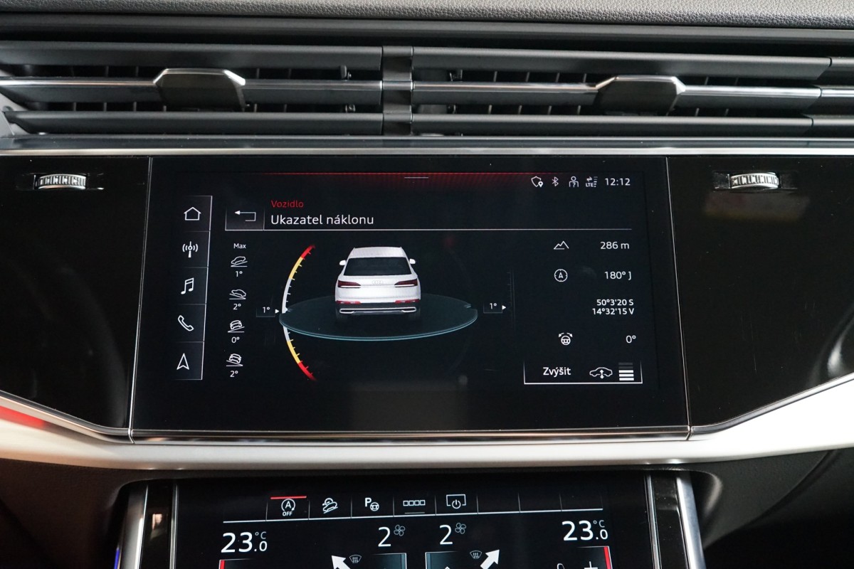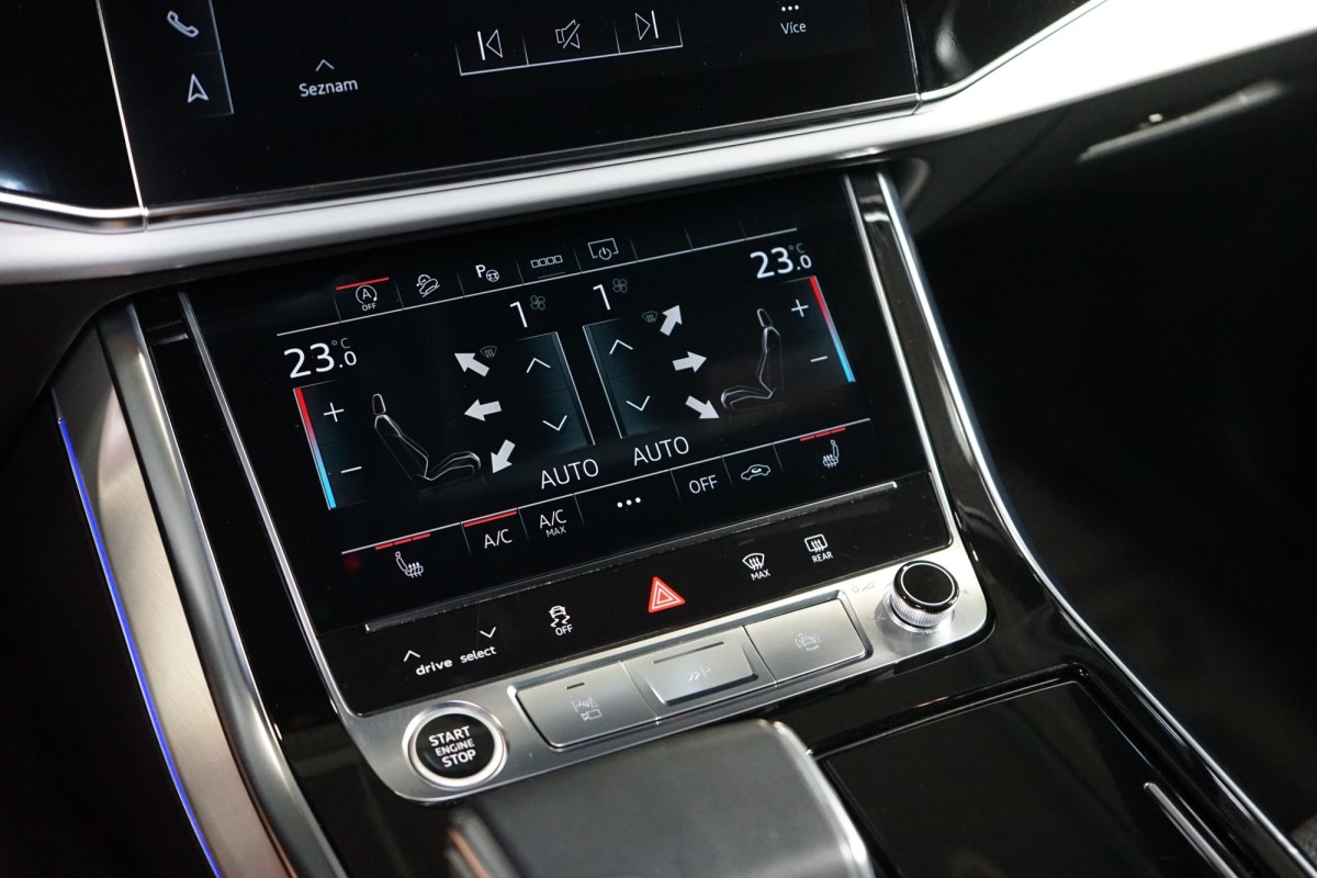 | Nadstandardní výbava: | 360° monitorovací systém (AVM), adaptivní regulace podvozku, parkovací kamera, adaptivní tempomat, ABS, ambientní osvětlení interiéru, Android Auto, Apple CarPlay, asistent jízdy v jízdním pruhu, asistent rozjezdu do kopce (HSA), asistent změny jízdního pruhu, stabilizace podvozku (ESP), protiprokluzový systém kol (ASR), brzdový asistent, automatické parkování, parkovací senzory přední, parkovací senzory zadní, bezdrátová nabíječka mobilních telefonů, bezklíčové odemykání, senzor opotřebení brzdových destiček, senzor tlaku v pneumatikách, autorádio, bluetooth, USB, digitální příjem rádia (DAB), centrál dálkový, dělená zadní sedadla, el. dovírání dveří, el. okna, centrální zamykání, el. seřiditelná sedadla, alu kola, el. startér, el. tažné zařízení, el. víko zavazadlového prostoru, kožené čalounění, hands free, satelitní navigace, hlídání jízdního pruhu, hlídání mrtvého úhlu, isofix, el. přední okna, senzor stěračů, LED matrixové světlomety, automatické přepínání dálkových světel, LED adaptivní světlomety, nastavitelný volant, přední světla LED, paměť nastavení sedadla řidiče, parkovací asistent, senzor světel, zadní světla LED, regulace tuhosti podvozku, regulace výšky podvozku, pohon 4x4, digitální přístrojová deska, digitální přístrojový štít, elektronická ruční brzda, palubní počítač, venkovní teploměr, vnitřní teploměr, volba jízdního režimu, řazení pádly pod volantem, tažné zařízení, ukazatel rychlostního limitu (SLIF), potahy kůže, bezklíčové startování, startování tlačítkem, vyhřívaná sedadla, el. sklopná zrcátka, vyhřívaný volant, výsuvné opěrky hlav, výškově nastavitelná sedadla, výškově nastavitelné sedadlo řidiče, el. zrcátka, zadní stěrač, záruka, vyhřívaná zrcátka, | |