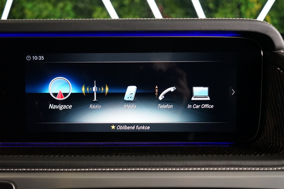 Doplňující popis: | AS243495 Fólie: Exteriér vozu potažen ochrannou transparentní PPF fólií Výbava: Barva: Modrá brilliant metalická, Čalounění: Kůže nappa MANUFAKTUR – jednobarevná sedadla v barvě bílá platinum, Elektricky ovládaná přední sedadla s paměťovou funkcí, Vyhřívaná přední a zadní sedadla, Odvětrávaná přední sedadla, Přední sedadla s masážní funkcí, Zatmavené světlomety, 22 kovaná kola AMG, Brabus koncovky výfuků, Nápisy a logo MB v černé barvě, exteriér, ISOFIX, Nastavitelné tlumení, Aktivní asistent jízdy v pruzích, Přední a zadní třmeny kotoučových brzd AMG ve stříbrné barvě, Přední prahové lišty z ušlechtilé oceli, Vnější ochranná lišta, vložka černá, Asistent mrtvého úhlu, DAB,Tuner, Zadní multimediální konzola, Surround soundsystém Burmester® 3D, CarPlay™, Parkovací asistent PARKTRONIC, Aktivní asistent udržování odstupu DISTRONIC, Elektricky ovládané posuvné střešní okno ve skleněném provedení, Obložení stropu, mikrovlákno DINAMICA, černá, Ambientní osvětlení, AMG Speedshift Plus 9G,Tronic, Asistent nehodové prevence, Asistent dopravního značení, Přístrojová deska v kůži nappa, Parkovací kamera 360° (systém sledování širokého okolí, surround view), Přední a zadní parkovací senzory, Volant AMG v provedení carbon/Dinamica, Noční paket AMG, Sada energizujícího komfortu, Linie Exclusive interiér Plus, Parkovací sada, Rozšířená sada AMG Night exteriér, Sada aktivních ortopedických sedadel Plus, Tažné zařízení, kulová hlava, Kryt náhradního kola lakovaný v černé barvě, Kontrola tlaku v pneumatikách, Tlačítka na volantu AMG (AMG DRIVE UNIT), Vnitřní střešní madla a madla dveří zadní stěny v kůži, Interiér G MANUFAKTUR, Exteriér G MANUFAKTUR, Tepelně izolační tmavě tónované sklo, Ozdobné prvky AMG carbon, Ozdobná krytka s nápisem MANUFAKTUR, Uzávěrka diferenciálu, LED denní svícení, Multimedia pro spolujezdce v druhé řadě, 3zónová automatická klimatizace, Multifunkční volant, Satelitní navigace, Bluetooth, USB, Asistent sledování bdělosti řidiče, Aktivní brzdový asistent | |