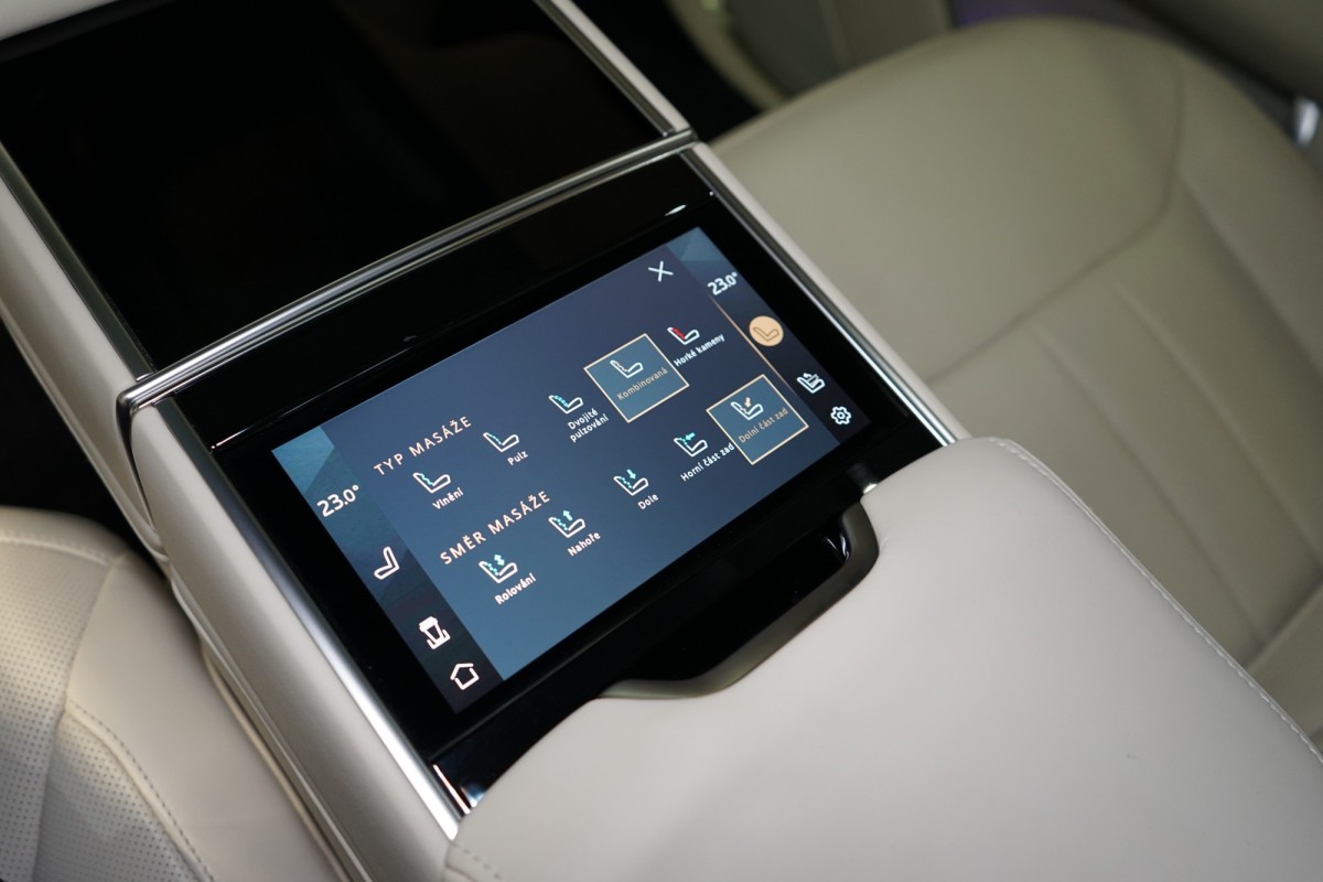 | Doplňující popis: | AS230830 Fólie: Exteriér vozu potažen ochrannou transparentní PPF fólií. Záruka: Vůz je v plnohodnotné tovární záruce do 05/2026. Výbava: Barva: Santorini Black, Zatmavená skla, 23 kola z lehké slitiny, Silver/Gloss Dark Grey Contrast (Style 1079) – zakázková výroba SV, Černé brzdové třmeny, Keyless,Go, Soft,close, El. ovládané víko kufru, El. ovládané tažné zařízení, Vzduchové odpružení s nastavitelnou výškou a tuhostí, Řízení všech kol, Sedadla čalouněná semianilinovou kůží v odstínu Perlino, Interiér v odstínu Perlino, Obložení v provedení Gloss Grand Black, Posuvné panoramatické střešní okno, Volant obšitý kůží Soft Grain, Vyhřívaný volant, Vyhřívaná a chlazená sedadla vpředu elektricky nastavitelná ve 24 směrech s masážní funkcí, Vyhřívaná a chlazená zadní sedadla s masážní funkcí, Kožené čalounění stropu, Ambientní osvětlení, Head,up displej, Zábavní systém pro cestující na zadních sedadlech s 11,4 displejem, As. dopravního značení, Adaptivní tempomat, Speed limit info, Hlídání mrtvého úhlu, Hlídání jízdního pruhu, Vyhřívané čelní sklo, 360° kamery, Asistent jízdy ze svahu, Konfigurovatelné programy, DAB,Tuner, Parkovací asistent, Apple CarPlay, Android Auto, Meridian 3D Surround sound system | |