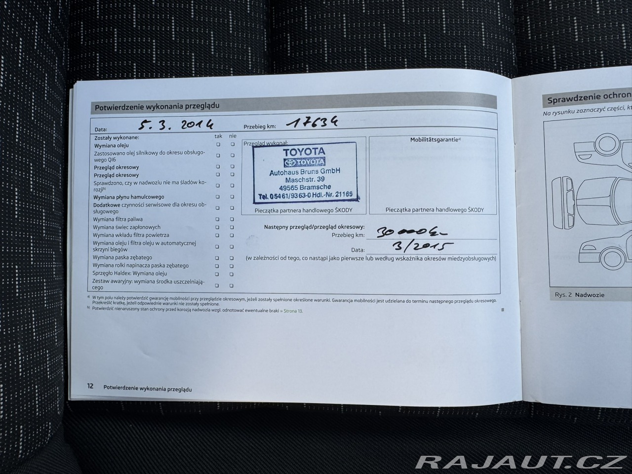 Doplňující popis: | MODEL FACELIFT, TAŽNÉ ZAŘÍZENÍ NA 1300KG, ZADNÍ PARKOVACÍ SENZORY, DVA KLÍČE, K VOZU ZIMNÍ KOLA, PĚKNÉ BRZDY A PNEUMATIKY NA VOZE, KLIMATIZACE, ŠESTISTUPEŇ, SLUŠNÁ KAROSERIE, TŘETÍ MAJITEL, SVIŽNÝ MOTOR TSI, V CENĚ VOZU NOVÁ DOVOZOVÁ STK DO 9/2027, PŘI PRODEJI POMOHU S POJIŠTĚNÍM A VYSTAVÍM PŘEVOZNÍ ČÍSLO, PŘEPIS A SPZ 800KČ, K DISPOZICI CEBIA REPORT. Najeto: 166 132 km Vyrobeno: 2013 V provozu od: 4/2013 VIN: TMBJJ21Z3D2077840 Klimatizace: Manuální Počet airbagů: 4 Počet dveří: 5 Počet míst: 5 Palivo: Benzín Objem: 1 390 ccm Výkon: 90 kW (122 koní) Převodovka: Manuální Převodový stupeň: 6 stupňová Pohon předních kol EURO 5 Serv. knížka: Ano Země původu: Německo STK: 9/2027 ABS Airbag 4x Autorádio Centrální zamykání Dálkové centrální zamykání Dělená zadní sedadla Denní svícení El. ovládání zrcátek El. přední okna ESP Imobilizér Isofix Klimatizace man. Litá kola Nastavitelná sedadla Nastavitelný volant Originální autorádio Parkovací senzory zadní Podélný posuv sedadel Posilovač řízení Protiprokluzový systém kol (ASR) Tažné zařízení Venkovní teploměr Výsuvné opěrky hlav Výškově nastavitelná sedadla Zadní stěrač | |