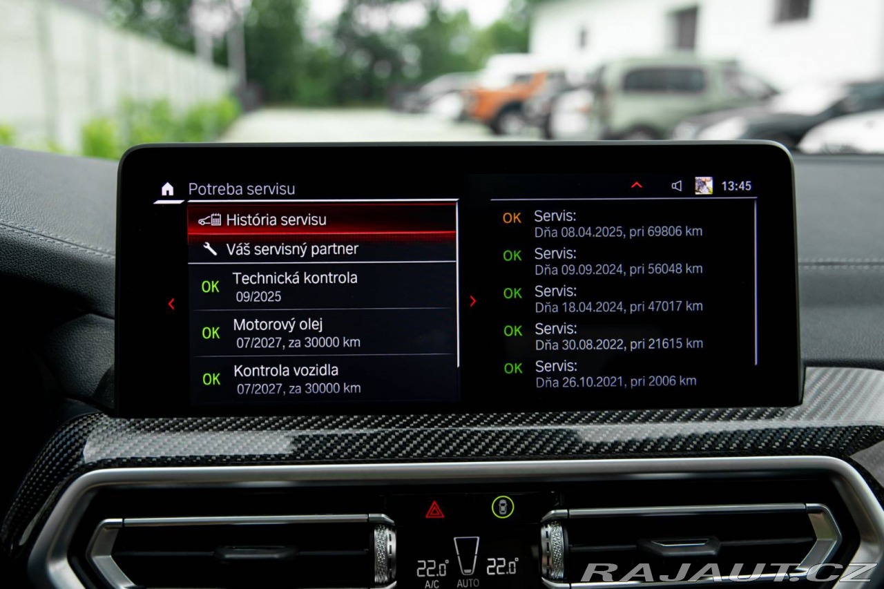 Nadstandardní výbava: | Poznámky: - Auto je v záruke ešte rok do 13.9.2026. - Farba: Toronto Red Metallic - M Sport výfuk - Úplná servisná história - Motorový olej menený každých 10 tisíc kilometrov (História k dispozícii), Adaptívny M podvozok, Asistent diaľkových svetiel, Asistent parkovania, Automatická Steptronic prevodovka, Automatické ovládanie zadných dverí, Automatické stmavovanie vnútorného zrkadla, BMW Live Cockpit Professional, Centrálne uzamykanie s diaľkovým ovládaním integrovaným v kľúči, Dažďový senzor vrátane automatického zapínania denného svietenia, Dynamická kontrola trakcie (DTC), Dynamické brzdové svetlá, El. nastaviteľné bedrové opierky vzadu, Elektricky nastaviteľné spätné zrkadlá, Elektrický snímač hladiny oleja, Filter pevných častíc, Funkcia denného svietenia, Kolenná opierka integrovaná v centrálnej konzole, Kotúčové brzdy vpredu a vzadu s chladením, Legal Emergency Call, Mechanicky nastaviteľný volant, Multifunkčný volant, Oddelujúca siet batožinového priestoru, Osvetlenie batožinového prietoru, Pasívny systém ochrany chodcov, Senzor nárazu, Upevňovacie oká v batožinovom priestore, Vyhrievané predné sedadlá, Výškovo nastaviteľné opierky hlavy, Športové predné sedadlá, Športový kožený volant Výbava: ABS, Adaptívny tempomat, Airbagy, Alarm, Brzdový asistent, DSC, Imobilizér, Natáčacie svetlomety, Parkovacia kamera, Systém kontroly tlaku v pneumatikách (TPMS), Asistent rozpoznávania dopravných značiek (ISLW/ISLA), Varovanie o vzdialenosti (BAS Plus), Systém rozpoznania únavy vodiča (DAW), 360° kamera, Systém tiesňového volania (e-Call), Adaptívny podvozok, Bezdotykové otváranie kufra, Bezkľúčové otváranie dverí, Bezkľúčové štartovanie, Bluetooth handsfree, Diaľkové ovládanie zamykania, Dotykový displej, Elektrické okná, Elektrické sedadlá, Elektrické zrkadlá, Elektrické ovládanie kufra, Fólie, Klimatizácia, Kožený interiér, Kožený paket, Lakťová opierka, LED svetlomety, LED svietenie, Multifunkčný volant, Navigačný systém, Odvetrávané sedadlá, Palubný počítač, Pamäťové sedačky, Parkovacie senzory, Parkovací asistent, Sedadlá s masážnou funkciou, Tempomat, Vyhrievané sedačky, Vyhrievané zrkadlá, Vyhrievaný volant, Vonkajší teplomer, Apple CarPlay, Android Auto, Virtuálny kokpit, Radenie pod volantom, Bezdrôtové nabíjanie pre smartphony, Ambientné osvetlenie, Asistent jazdných pruhov, Dažďový senzor, Head-up display, Hliníkové disky, Hmlovky, Kontrola mŕtveho uhla, Panoramatická strecha, Stop&start systém, Strešné okno, Strešný nosič, Ťažné zariadenie | |