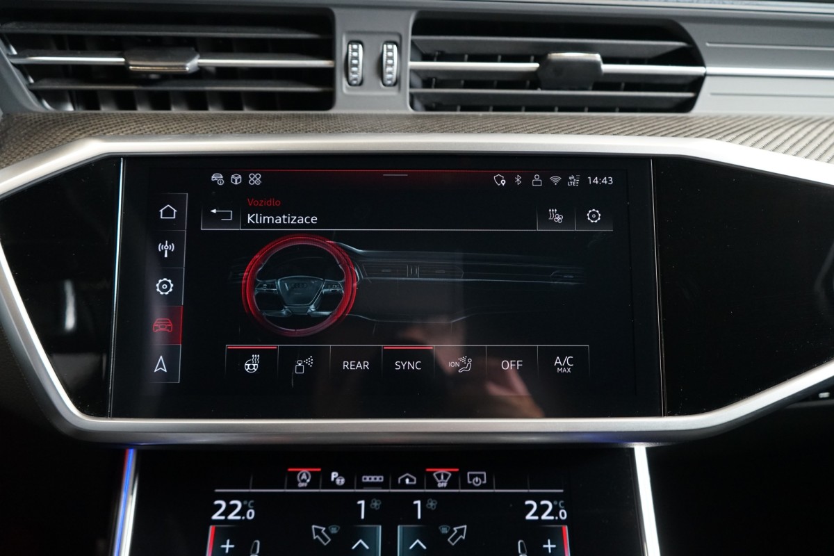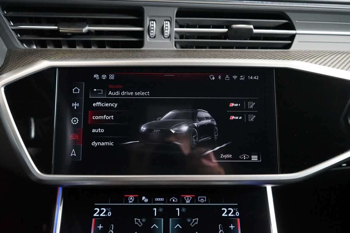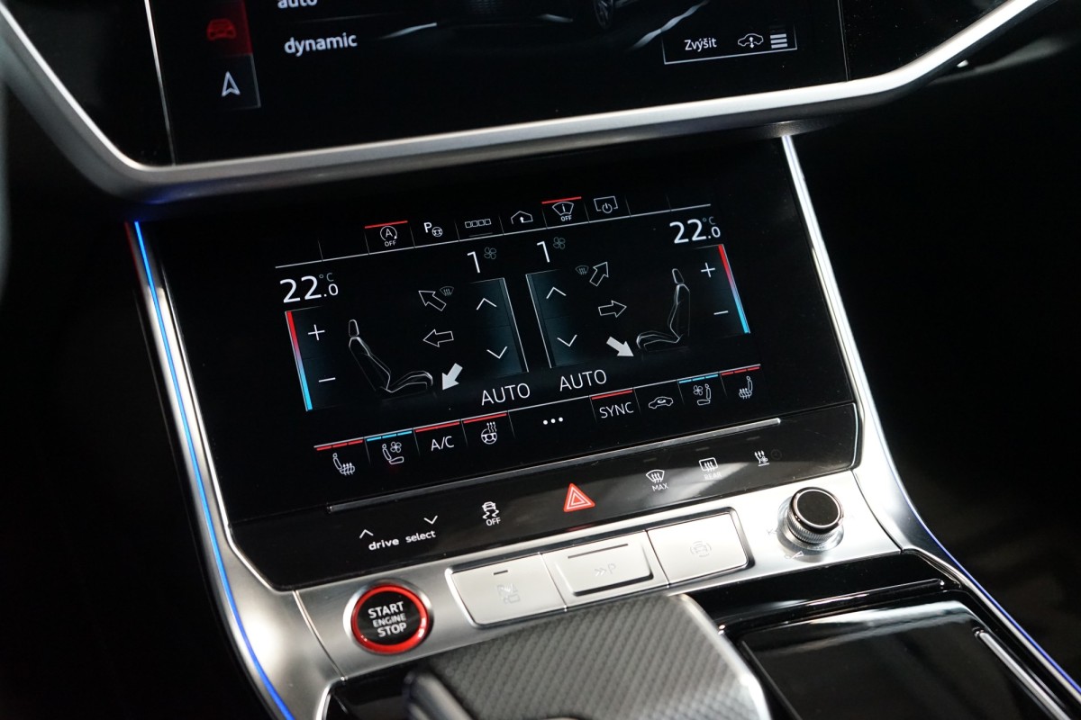 Doplňující popis: | AS251149 Záruka: Prodloužená záruka na 5 let / 150 000 km do 01/2030. Fólie: Exteriér vozu potažen ochrannou transparentní PPF fólií. Výbava: Barva: Mythos černá, 22 litá kola, 5paprskový strukturový V design, černá, Paket ambientního ovzduší, 4zónová automatická klimatizace, Přední a zadní vyhřívaná sedadla, Prvky interiérové výbavy vrchní a spodní v kůži, Asistent nočního vidění, Sedadla komfortní vpředu v kombinaci kůže Valcona/perforovaná kůže Milano s paměťovou funkcí, Audi virtual cockpit plus s dalším RS typem zobrazení, Head,up displej, Klimakomfortní vyhříváné akustické čelní sklo, bezdrátové vyhřívání, Parkovací asistent, Přední a zadní parkovací senzory, 360 parkovací kamera, Servomechanické dovírání dveří, Tažné zařízení s asistentem pro couvání, Dekorace z strukturového karbonu Kepr, Kolejnicový systém s fixační sadou, Ochranné manuální rolety proti slunci pro zadní boční okna, Odvětrávání předních sedadel a masážní funkce, Čalounění stropu z černé Alcantary, Kryty vnějších zrcátek v barvě vozu, Panoramatické střešní okno, RS sportovní koncovky výfuku, Světlomety HD Matrix LED s Audi laserovým světlem, LED zadními světly a ostřikovači světlometů, Vnější zpětná zrcátka automaticky zatmavitelná s pamětí, Dálkové ovládání garážových vrat, Nezávislé topení a větrání, Audi phone box, Vyhřívaný multifunkční preforovaný volant v kůži, Parkovací asistent, RS ocelové brzdy s leskle červenými brzdovými třmeny, Asistenční paket City, Asistenční paket Tour, Paket černé optiky, RS dynamický paket, Asistent rozpoznání dopravních značek, Asistent změny jízdního pruhu, Asistent křižovatky, Výstraha vzdálenosti, Ambientní osvětlení, Audi drive select, volič jízdních režimů, Asistent dálkových světel, El. ovládané víko kufru, Kruhy Audi a loga RS 6 v lesklé černé, Quattro se sportovním diferenciálem, Adaptivní tempomat, Audi Smartphone Interface (Apple CarPlay, Android Auto), Doporučená přestávka, Keyless,Go, Adaptivní vzduchové odpružení s nastavitelnou výškou a tuhostí | |