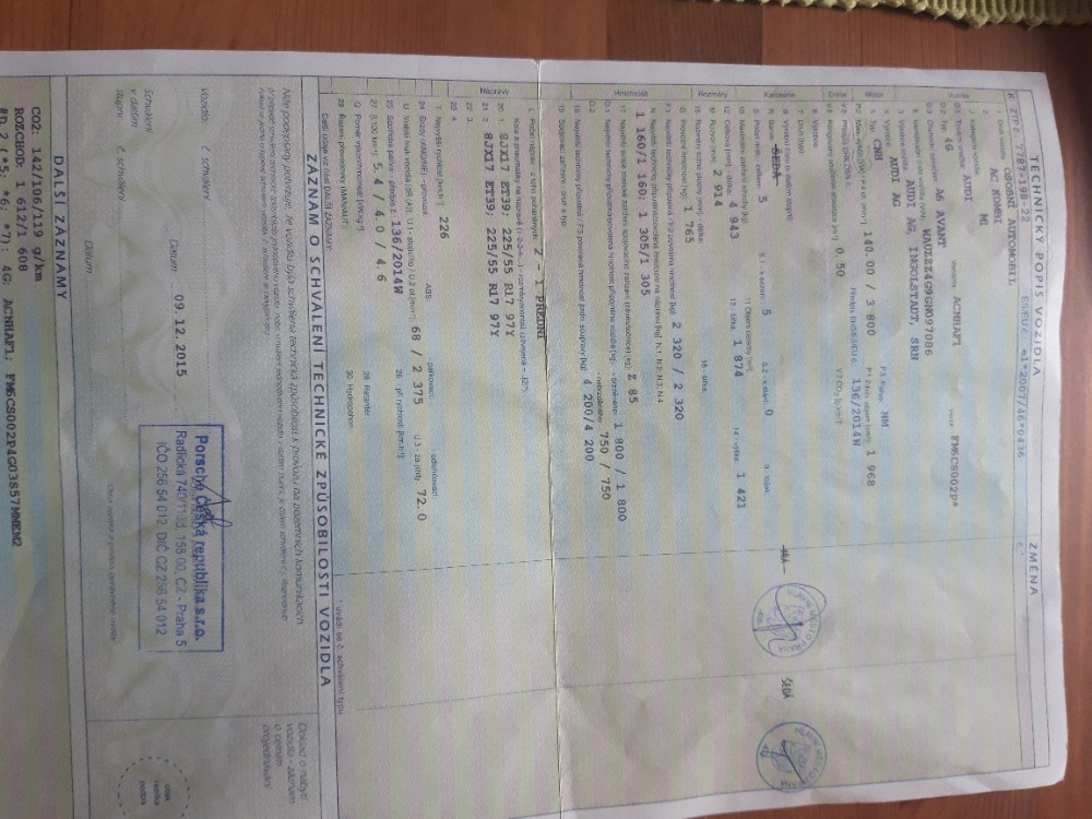 Nadstandardní výbava: | Na prodej AUDI A6 Avant 2,0TDI, r.v. 2016, objem:1986ccm, výkon : 140kw, Euro 6, zakoupeno v ČR, 2 majitel v TP, pravidelný servis ( nyní po velkém servisním intervalu, 118tkm nová spojka), najeto: 165tkm s garancí ověřeno přes ministerstvo dopravy ČR a autorizovaný servis Audi. STK:08/2027. Velmi dobrý technický stav i vzhled. Vše na vozidle funkční. Jezdí velmi dobře. Celoroční pneu. 2x klíč, manuální 6-rychlostni převodovka. Výbava: klimatizace, airbagy, ABS ASR ESP, palubní počítač , tempomat, výškově nastavitelný volant i sedadla, rádio CD MP3, vypínatelný airbag spolujezdce, parkovací senzory přední i zadní, xenonové světlomety, vyhřívaná sedadla i zrcátka, el.okna, el.zrcatka, Bluetooth, ALU kola 17, AUTO Hold, navigační systém, startování tlačítkem, ISOFIX, tónová skla, dělená zadní sedadla, atd, atd... Vin pro prověření vozidla na požádání. Financování v případě zájmu o úvěr zajištěno. Možná prohlídka v autorizovaném servisu AUDI popř STK a EM. Inzerát je platný do smazání. | |