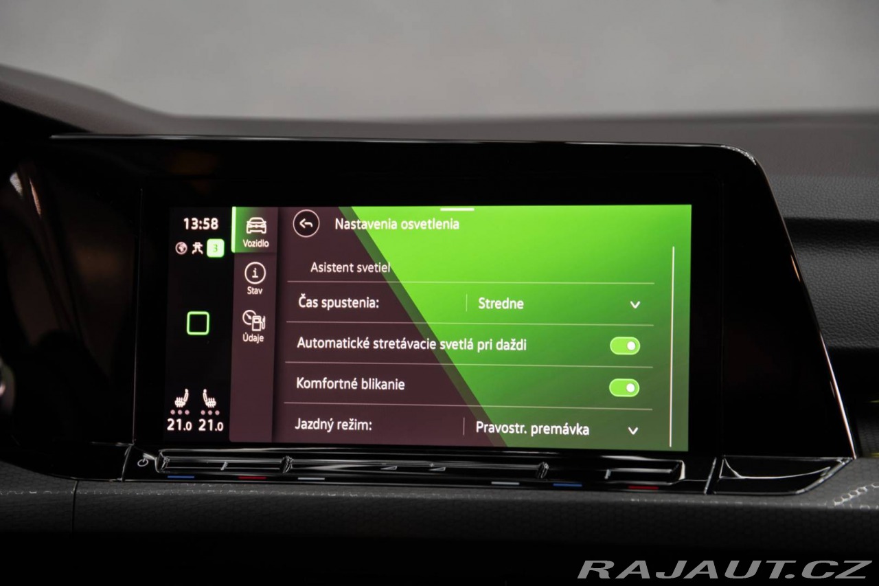 Nadstandardní výbava: | Výbava: ABS, Airbagy, Airbagy - počet, Alarm, ASR, Brzdový asistent, Centrálne zamykanie, Deaktivácia airbagov, ESP, Imobilizér, Isofix, Natáčacie svetlomety, Systém kontroly tlaku v pneumatikách (TPMS), Asistent rozpoznávania dopravných značiek (ISLW/ISLA), Autorádio, Bezkľúčové štartovanie, Bluetooth handsfree, Diaľkové ovládanie zamykania, Dotykový displej, Elektrické okná, Elektrické zrkadlá, Klimatizácia, Klimatizovaná priehradka, Kožený paket, Lakťová opierka, LED svetlomety, LED svietenie, Multifunkčný volant, Navigačný systém, Palubný počítač, Parkovacie senzory, Posilňovač riadenia, Tempomat, Vyhrievané sedačky, Vyhrievané zrkadlá, Vyhrievaný volant, Vonkajší teplomer, Apple CarPlay, Android Auto, Welcome light, Virtuálny kokpit, Radenie pod volantom, Ambientné osvetlenie, Asistent rozjazdu do kopca, Dažďový senzor, Hliníkové disky, Hmlovky, Stop&start systém, Svetelný senzor | |