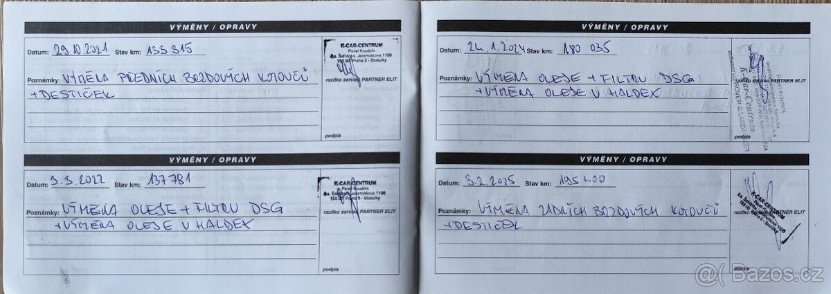 Doplňující popis: | TEL: 776004402 OKR: JABLONEC NAD NISOU Kodiak, 140 kW dsg 205000 km celá karoserie polepená ochranou fólií proti poškrábání, olej měněn každých 15000 km. Po výměně oleje převodovky, nové kompletní rozvody, brzdy, baterie . Doloženo servisní knížkou. VIN: TMBLK9NS1L8507274 Výbava vozu Bezpečnostní systémy: ABS, ESP, Hlídání mrtvého úhlu, Nouzové brždění, Protiprokluzový systém kol (ASR), Sledování jízdního pruhu, Sledování únavy řidiče, Upozornění na přijíždějící vozidla při couvání (RCTA) Asistenční systémy: 360° monitorovací systém (AVM), Adaptivní tempomat, Asistent pro vedení vozu v jízdních pruzích, Asistent změny jízdního pruhu, Parkovací asistent, Parkovací kamera, Parkovací senzory, Tempomat, Parkovací senzory přední, Parkovací senzory zadní Zabezpečení vozidla: Centrální zamykání, Dálkové centrální zamykání, Imobilizér, ochranná folie laku. Vnitřní výbava a komfort: Ambientní LED osvětlení interiéru, Bezklíčkové ovládání, Deaktivace airbagu spolujezdce, El. ovládání oken, El. ovládání zrcátek, El. ovládaný kufr, El. sklopná zrcátka, Elektrochromatické vnitřní zpětné zrcátko, Klimatizovaná přihrádka, Multifunkční volant, Nastavitelný volant, Pádla řazení na volantu, Posilovač řízení, Senzor stěračů, Senzor tlaku v pneumatikách, Venkovní teploměr, Vyhřívaná zrcátka, Zadní loketní opěrka, Zásuvka na 220 V Palubní systémy a konektivita: Android Auto, Apple Car Play, Bezdrátová nabíječka mobilních telefonů (Qi), Bluetooth, Digitální příjem rádia (DAB), Digitální přístrojový štít, (virtuální kokpit laděn na RS) Dotykové ovládání palubního počítače, Hlasové ovládání palubního počítače, Originální autorádio, Ovládání vybraných funkcí vozu gesty, Palubní počítač, Satelitní navigace, USB, Digitální přístrojová deska Sedadla: Dělená zadní sedadla, El. seřiditelná sedadla, na obou stranách s pamětí, Isofix, Nastavitelná sedadla, Vyhřívaná sedadla, Výškově nastavitelná sedadla, Vyhřívaná zadní sedadla, Třetí řada sedadel. Světelná technika: Automatické přepínání dálkových světel, LED adaptivní světlomety, LED denní svícení, LED světlomety plnohodnotné, Mlhovky, Ostřikovače světlometů, Denní svícení Vnější výbava: Dojezdové rezervní kolo, Litá kola 19 +zimní obutí Tažné zařízení, Tónovaná skla, Zadní stěrač, Zatmavená zadní skla, Elektrické tažné zařízení Pohon a podvozek: Dsg 140 kW, 4x4 Start/Stop systém, Volba jízdního režimu, | |