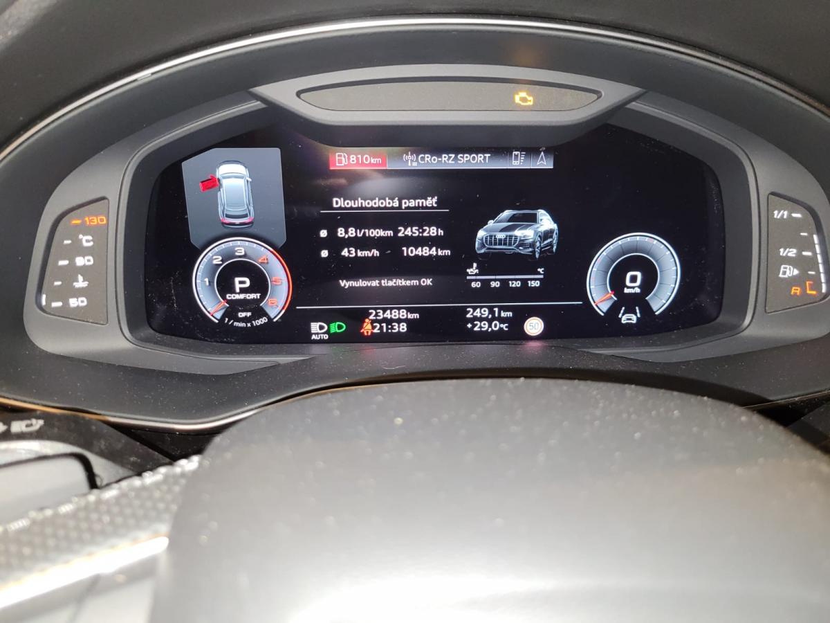 Nadstandardní výbava: | pohon 4x4, aut. převodovka, sportovní podvozek, ABS, stabilizace podvozku (ESP), protiprokluzový systém kol (ASR), asistent rozjezdu do kopce (HSA), hlídání jízdního pruhu, hlídání mrtvého úhlu, aut. zabrzdění v kopci, posilovač řízení, aut. klimatizace, man. klimatizace, nezávislé topení, nezávislé topení s čas. předehřívačem, tempomat, natáčecí světlomety, denní svícení, LED denní svícení, alu kola, palubní počítač, digitální přístrojový štít, volba jízdního režimu, satelitní navigace, parkovací senzory přední, parkovací senzory zadní, parkovací kamera, bezklíčové odemykání, senzor světel, senzor stěračů, nastavitelný volant, multifunkční volant, hands free, bluetooth, el. okna, střešní nosič, el. sklopná zrcátka, startování tlačítkem, imobilizér, centrál dálkový, centrální zamykání, sportovní sedadla, potahy kůže, isofix, kožené čalounění, ambientní osvětlení interiéru, vyhřívaná sedadla, el. seřiditelná sedadla, senzor tlaku v pneumatikách, zadní světla LED, ostřikovače světlometů, start-stop systém, USB, autorádio, dělená zadní sedadla, zadní loketní opěrka, zadní stěrač, tónovaná skla, zatmavená zadní skla, záruka, malý kožený paket, | |