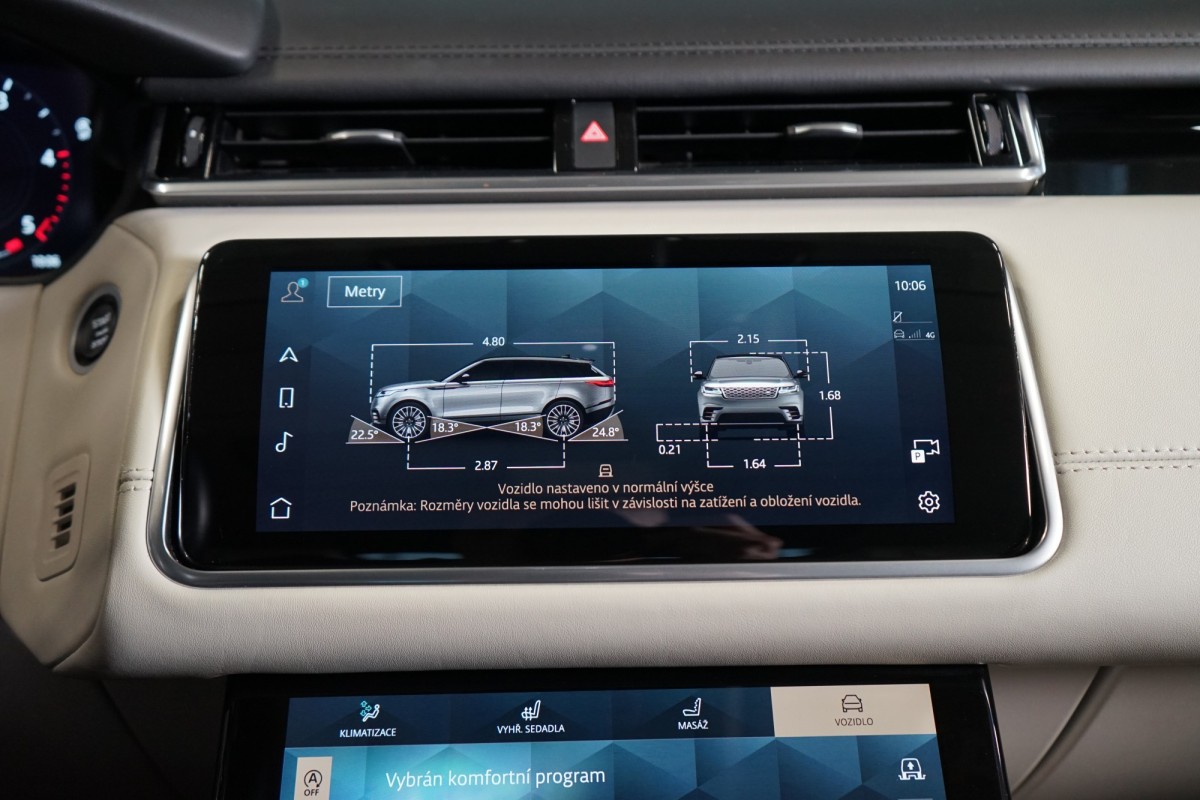Doplňující popis: | AS210123 Výbava: Barva: Fuji White, 22 kola z lehké slitiny s 9 dvojitymi paprsky, Satin Light Silver Contrast Diamond Turned (Style 9007), Sedadla čalouněná perforovanou kůží Windsor, Perforovaná kůže Windsor v odstínu Light Oyster, interiér v odstínu Light Oyster, Ozdobné hliníkové obložení Shadow Aluminium, Střecha v kontrastní barvě, černá, Panoramatické střešní okno, posuvné, Podélné střešní nosiče, černé, R,Dynamic Black Pack, Skla od S,sloupku, zatmavená skla, Světlomety laserové Matrix LED s LED signaturou, Přední mlhová světla, Komfortní přístupový systém, Elektricky ovládané víko kufru, Sedadla nastavitelná ve 20 směrech (z toho 18 elektricky), s paměťovou funkcí sedadla řidiče a spolujezdce vpředu, masážní funkcí, vyhřívanymi/chlazenymi sedadly vpředu a vyhřívanymi sedadly vzadu, Rozšířená celokožená vybava, Čalounění stropu tkaninou Morzine v odstínu Light Oyster, Volant obšity kůží, Vyhřívaný volant, Audiosystém Meridian™ 3D Surround, Přístrojovy displej 12,3 TFT, Technology Pack, Cold Climate Pack, Hot Climate Pack, Dynamic Handling Pack, Sklo čelní a trysky ostřikovače, vyhřívané, Sklo čelní, tepelně izolační, Bez znaku, Parkovací asistent, Program Dynamic systému Terrain Response 2, All Terrain Progress Control (ATPC), Elektronicky aktivní diferenciál se systémem rozdělování točivého momentu brzdnymi zásahy (Torque Vectoring by Braking, TVbB), Jízdní režim Dynamic, konfigurovatelny, Přednastavení teploty interiéru s dálkovym ovládáním, Čtyřzónová klimatizace, Ionizace vzduchu v interiéru s filtrem PM2.5, Prémiové osvětlení interiéru, Prémiové kobercové rohože, Přístrojová deska se zakončovacími prvky v chromu, Prahové lišty vpředu a vzadu z hliníku s emblémem R,Dynamic, I išty vpředu osvětlené, Příruční schránka, uzamykatelná a chlazená, Průhledovy displej (HUD), Integrovaná základna Click and Go, Tažné zařízení, elektricky vysuvné | |