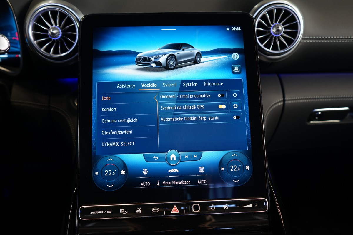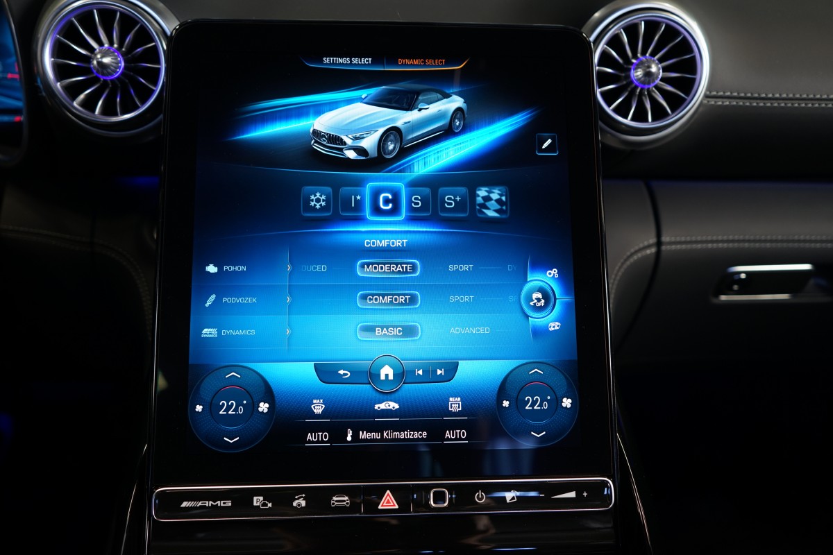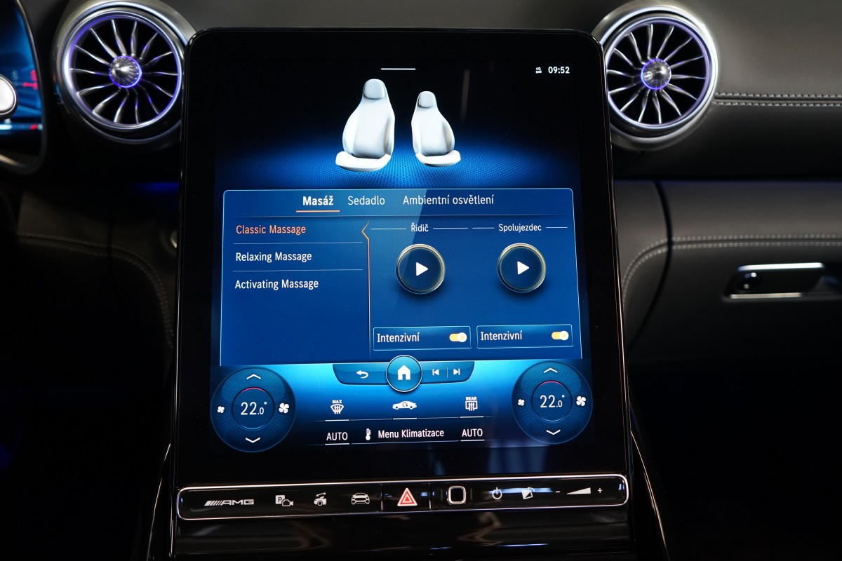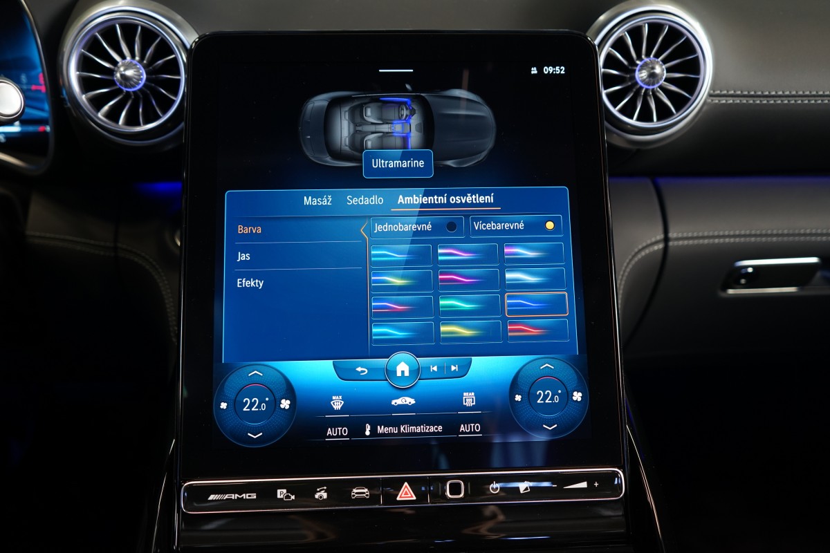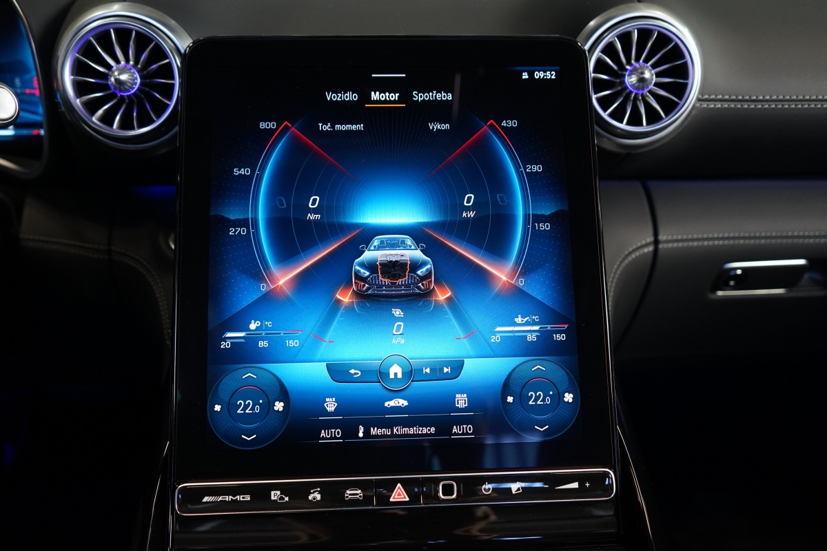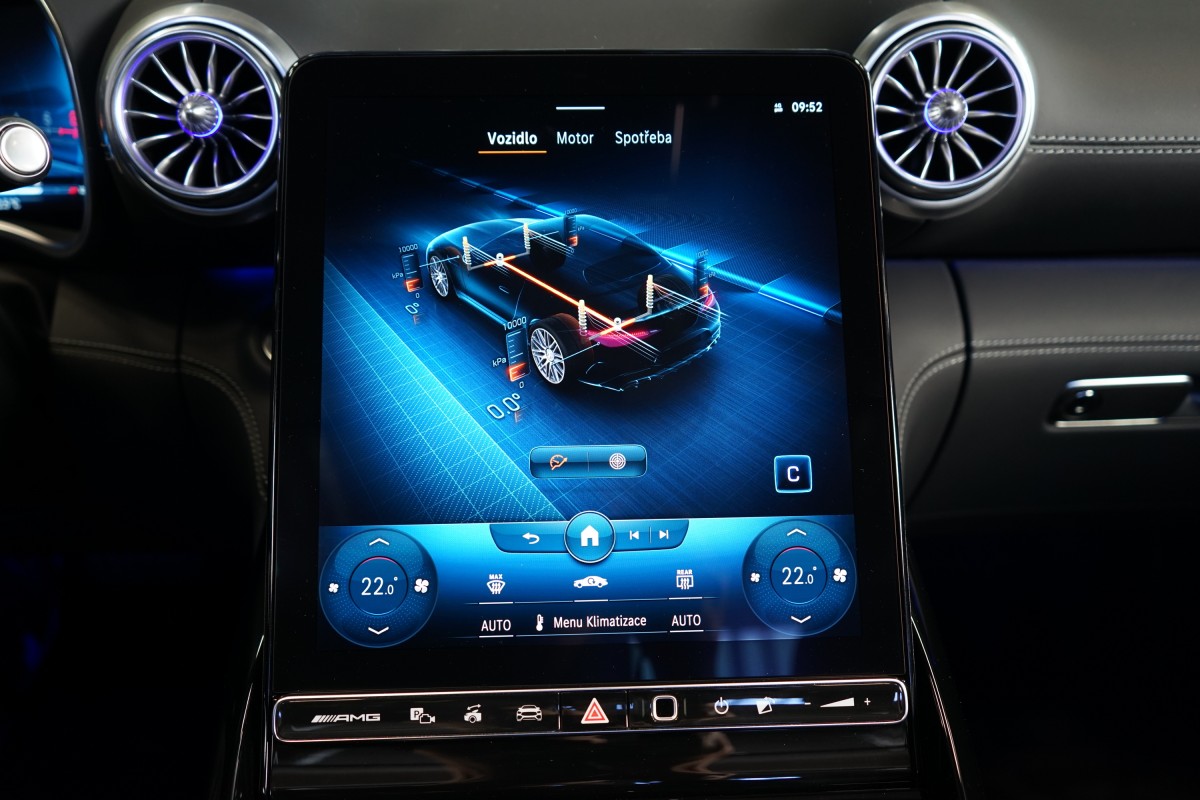 | Doplňující popis: | AS250547 Záruka: Vůz je v prodloužené záruce do 06/2027 nebo 200.000 km. Výbava: Barva: Modrá Hyper, metalický lak, 21 dvoupaprsková kola AMG, Čalounění: Kůže / nappa / semianilin, Paměťová sada pro sedadla řidiče a spolujezdce, Sada komfortních sedadel s masážní funkcí vpředu (ortopedická sedadla), Vyhřívaná a ventilovaná přední sedadla, AIRSCARF, vyhřívání prostoru kolem zátylku a krku z hlavových opěrek, Ozdobné prvky, plast / černý, Brzdové třmeny ve žluté barvě, Systém zdvihu přední nápravy, Sada AMG DYNAMIC PLUS, Řízení zadní nápravy AMG, Světlomety DIGITAL LIGHT, Zatmavené přední a zadní světlomety, Plátěná střecha, černá, Adaptivní systém ostřikovačů/stěračů čelního skla MAGIC VISION CONTROL pro funkce projekce symbolů, Vnitřní a vnější zrcátko řidiče s automatickou funkcí proti oslnění, Bezdotykové otevírání/zavírání víka zavazadlového prostoru HANDS,FREE ACCESS, KEYLESS,GO včetně zapuštěných výsuvných klik, Sportovní volant AMG Performance potažený kůží nappa/mikrovlákno MICROCUT, Vyhřívaný multifunkční volant, Ovládání AMG na volantu, Automatická klimatizace THERMOTRONIC, Vnitřní čalounění stropu látkové černé, Head,up displej, Aktivní asistent jízdy v pruzích, Aktivní asistent udržování odstupu, Aktivní asistent pro změnu jízdního pruhu, Aktivní brzdový asistent, Aktivní asistent sledování mrtvého úhlu, Monitorování tlaku v pneumatikách, Asistent dopravního značení, Asistent adaptivních dálkových světel Plus, Aktivní adaptivní tempomat DISTRONIC, Aktivní asistent řízení, 360° kamera, Sada pro smartphone (Apple CarPlay, Android Auto) | |