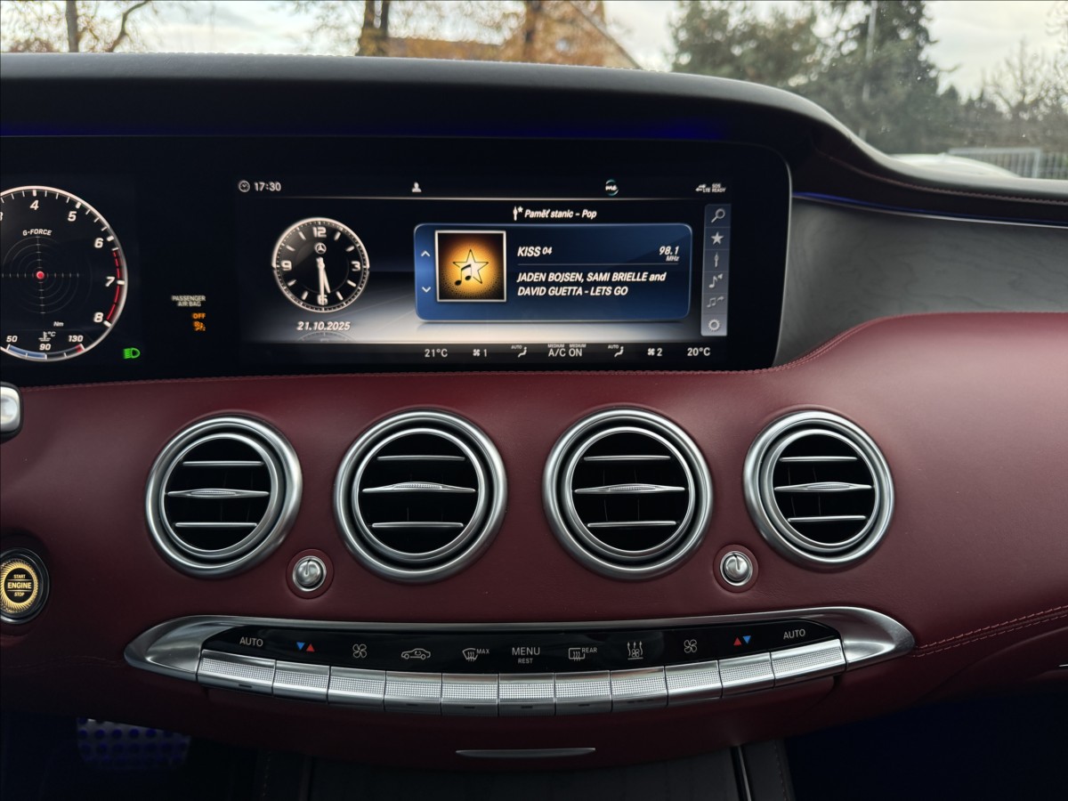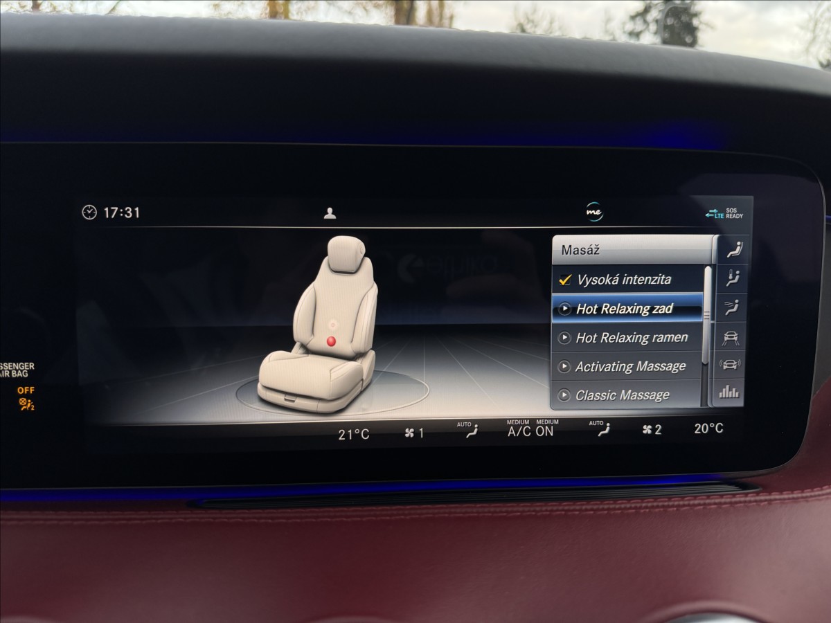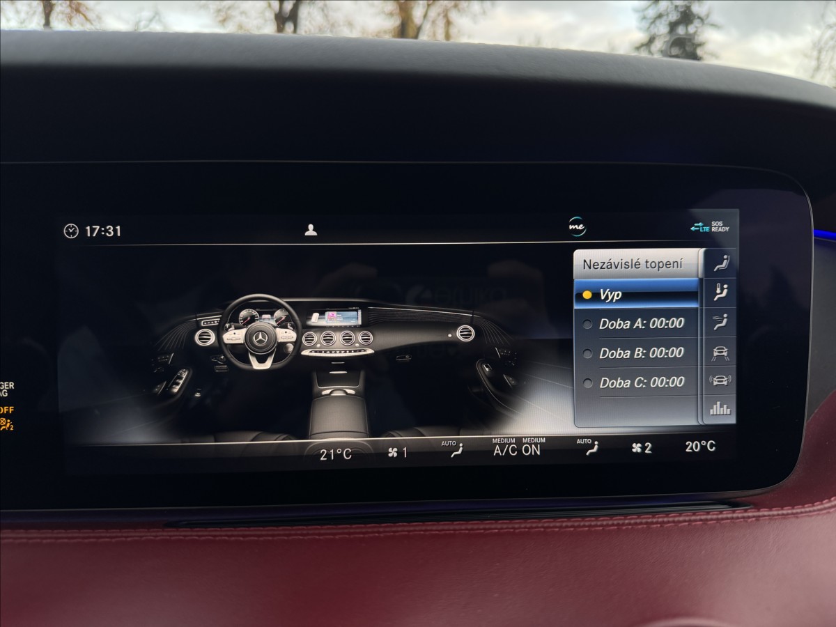 Doplňující popis: | Designo, Vzduchový podvozek, Nezávislé topení, Led inteligent light system, Key less go, El. víko kufru, El. dověry dveří, El. nastavitelná sedadla s vyhříváním a ventilací, Masáže, Tepelné šály, Přístrojová deska v kůži, Alcantarový strop, Střešní okno, Burmester sound system, Head up display, Noční vidění, Ambiente osvětlení, Adaptivní tempomat, 360 Kamera, Asistent jízdy v pruzích, Hlídání mrtvého úhlu... | |