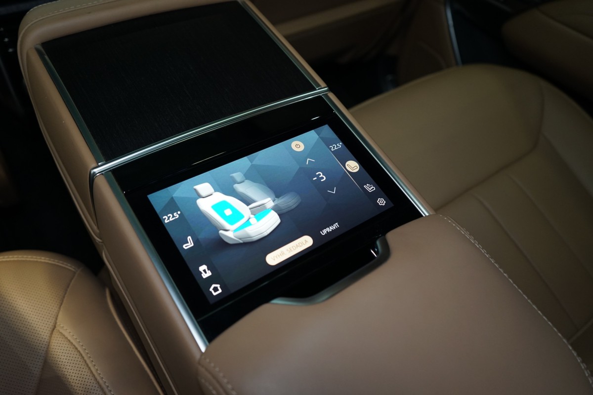 | Nadstandardní výbava: | 360° monitorovací systém (AVM), adaptivní regulace podvozku, parkovací kamera, adaptivní tempomat, ABS, ambientní osvětlení interiéru, Android Auto, Apple CarPlay, asistent jízdy v jízdním pruhu, asistent jízdy v koloně, asistent rozjezdu do kopce (HSA), asistent stability přívěsu (TSA), asistent změny jízdního pruhu, aut. aktivace výstražných světlometů, stabilizace podvozku (ESP), protiprokluzový systém kol (ASR), brzdový asistent, aut. uzávěrka diferenciálu, aut. zabrzdění v kopci, parkovací senzory přední, parkovací senzory zadní, bezdrátová nabíječka mobilních telefonů, bezklíčové odemykání, senzor opotřebení brzdových destiček, senzor tlaku v pneumatikách, autorádio, bluetooth, USB, digitální příjem rádia (DAB), aut. klimatizace, dotykové ovládání palubního počítače, centrál dálkový, dělená zadní sedadla, dřevěné obložení, el. dovírání dveří, el. okna, el. seřiditelná sedadla, alu kola, el. startér, el. tažné zařízení, el. víko zavazadlového prostoru, kožené čalounění, hands free, satelitní navigace, head-up display, hlasové ovládání palubního počítače, hlídání jízdního pruhu, hlídání mrtvého úhlu, isofix, el. přední okna, senzor stěračů, LED adaptivní světlomety, LED denní svícení, automatické přepínání dálkových světel, nastavitelný volant, natáčecí zadní kola, nouzové brzdění (PEBS), odvětrávaná sedadla, přední světla LED, paměť nastavení sedadla řidiče, panoramatická střecha, parkovací asistent, zadní světla LED, regulace tuhosti podvozku, regulace výšky podvozku, pohon 4x4, polohovací sedadla, aut. převodovka, pérování vzduch, regulace rychlosti při jízdě ze svahu, digitální přístrojová deska, digitální přístrojový štít, roletky na zadních oknech, elektronická ruční brzda, palubní počítač, sedadla s funkcí masáže - přední, venkovní teploměr, vnitřní teploměr, volba jízdního režimu, aut. stavitelný volant při nástupu, sledování únavy řidiče, multifunkční volant, posilovač řízení, řazení pádly pod volantem, start-stop systém, podélný posuv sedadel, tónovaná skla, ukazatel rychlostního limitu (SLIF), potahy kůže, sportovní sedadla, ventilovaná zadní sedadla, bezklíčové startování, startování tlačítkem, vyhřívaná sedadla, vyhřívaná zadní sedadla, el. sklopná zrcátka, vyhřívaný volant, výsuvné opěrky hlav, výškově nastavitelná sedadla, výškově nastavitelné sedadlo řidiče, zadní loketní opěrka, el. zrcátka, zadní stěrač, samostmívací zrcátka, zatmavená zadní skla, čtyřzónová klimatizace, vyhřívaná zrcátka, | |