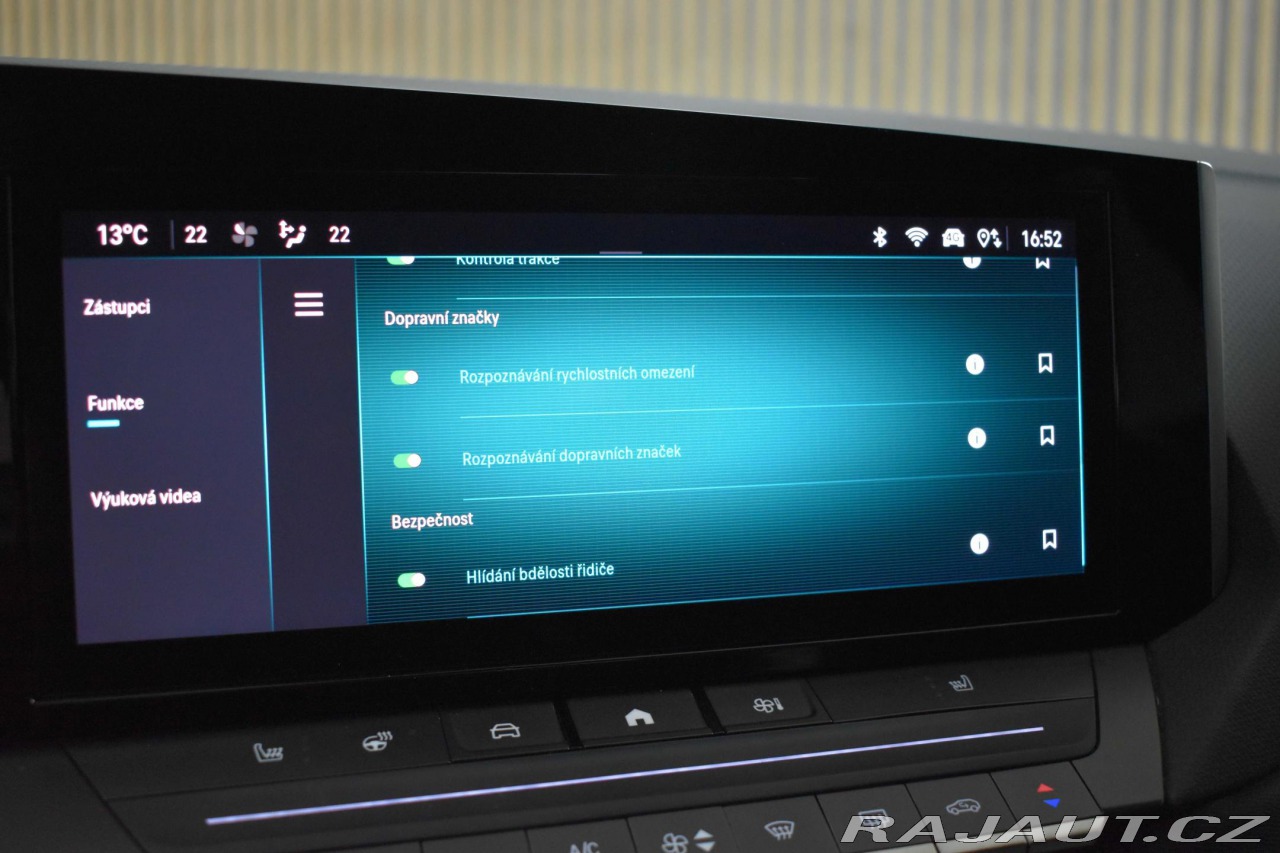 | Nadstandardní výbava: | aut. převodovka, 6x airbag, ABS, stabilizace podvozku (ESP), protiprokluzový systém kol (ASR), nouzové brzdění (PEBS), ukazatel rychlostního limitu (SLIF), hlídání jízdního pruhu, hlídání mrtvého úhlu, sledování únavy řidiče, posilovač řízení, dvouzónová klimatizace, aut. klimatizace, adaptivní tempomat, tempomat, LED denní svícení, alu kola, plní 'EURO VI', palubní počítač, dotykové ovládání palubního počítače, digitální přístrojový štít, volba jízdního režimu, elektronická ruční brzda, satelitní navigace, head-up display, hlídání provozu při couvání (RCTA), parkovací senzory přední, parkovací senzory zadní, 360° monitorovací systém (AVM), parkovací kamera, bezklíčové odemykání, senzor světel, senzor stěračů, nastavitelný volant, multifunkční volant, vyhřívaný volant, řazení pádly pod volantem, deaktivace airbagu spolujezdce, hands free, Android Auto, Apple CarPlay, bezdrátová nabíječka mobilních telefonů, bluetooth, el. okna, střešní šíbr el., panoramatická střecha, el. sklopná zrcátka, el. zrcátka, startování tlačítkem, zaslepení zámků, imobilizér, centrál dálkový, potahy kůže, isofix, kožené čalounění, vyhřívaná sedadla, el. seřiditelná sedadla, výškově nastavitelná sedadla, paměť nastavení sedadla řidiče, polohovací sedadla, senzor tlaku v pneumatikách, přední světla LED, zadní světla LED, mlhovky, start-stop systém, USB, autorádio, digitální příjem rádia (DAB), venkovní teploměr, vyhřívané přední sklo, dělená zadní sedadla, zadní loketní opěrka, střešní okno, zadní stěrač, zatmavená zadní skla, podélný posuv sedadel, výsuvné opěrky hlav, digitální přístrojová deska, | |
