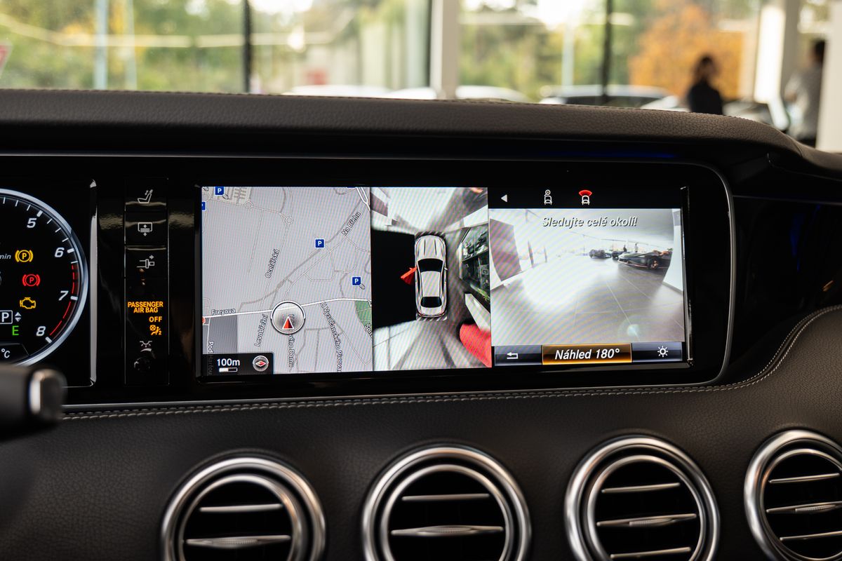 | Doplňující popis: | Číslo inzerce: ZE.007.4417, Nebouraný a nelakovaný vůz, Popelník místo odkládací přihrádky, Bluetooth telefonní modul (Auto-Telefonie), DVD měnič, Osvětlené prahové lišty, Držáky nápojů vpředu (dvojité), Head-up displej (projekce na čelní sklo), Kamerový systém 360°, Volant v kombinaci dřevo / kůže, Hliníková kola vpředu/vzadu: 8,5x20 / 9,5x20 (AMG, vícepaprsková), Integrovaný ovladač garážových vrat, Čalounění z kůže Nappa, Přední sedadla s klimatizací, Vyhřívání předních sedadel Plus, Elektricky ovládaná roleta zadního okna, Burmester Surround Sound systém, Touchpad s otočným ovladačem (středová konzole), Příprava pro mobilní telefon / komfortní telefonii / LTE připojení | |