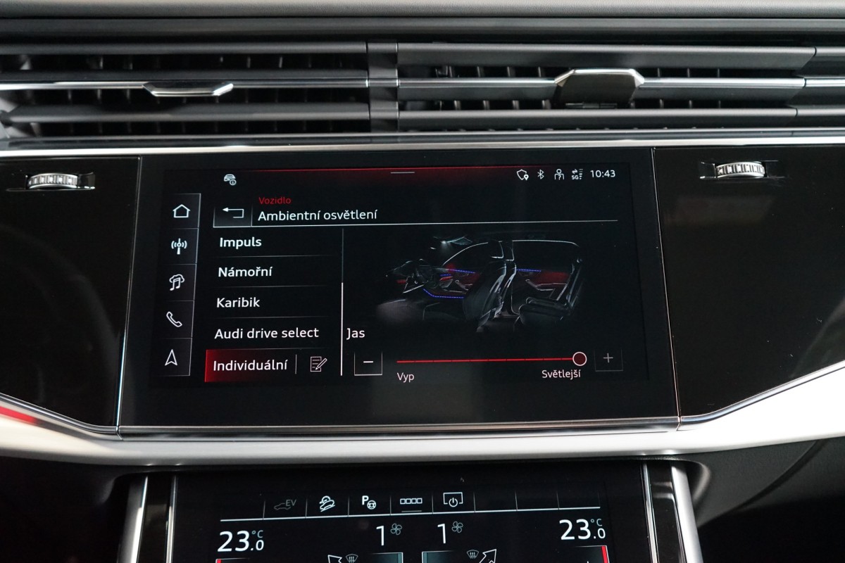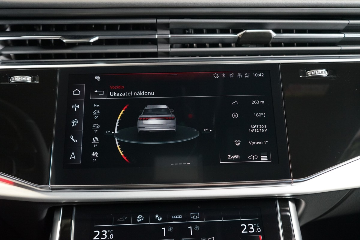 | Doplňující popis: | AS251330 Záruka: Vůz je v plnohodnotné tovární záruce. Výbava: Barva: Audi Exclusive šedá Nardo, metalický lak, 23 litá kola AudiSport, 10 paprsků ve tvaru lichoběžníku, černá, Čalounění v kůži Valcona s vyraženým logem S a diamantovým prošitím, Dekorace z matného kartáčovaného hliníku, Adaptivní pneumatický podvozek, S line sportovní paket, Akční paketTechnology, Asistent hlídání mrtvého úhlu s Audi pre sense rear, Asistenční paketTour, Bang & Olufsen 3D Premium Sound System, Digitální OLED zadní světla, Elektricky nastavitelný sloupek řízení, Kruhy Audi a loga v černé barvě, Kryty vnějších zpětných zrcátek v černé barvě, Multifunkční 3ramenný kožený volant s pádly řazení a funkcí vyhřívání, Nezávislá komfortní klimatizace, Odvětrávání sedadel a masážní funkce vpředu, Paket parkovacích asistenčních systémů, Paket černé optiky, Panoramatické prosklené střešní okno, Prvky interiérové výbavy vrchní v kůži s kontrastním prošitím a spodní v kožence, S,line sportovní paket, Sedadla sportovní plus vpředu, Střešní ližiny v černé barvě, Světlomety Matrix LED s LED zadními světly, Elektricky ovládané tažné zařízení, Zadní sedadla plus, Audi virtual cockpit plus, Komfortní středová loketní opěrka vpředu, Vyhřívaná přední sedadla, Elektricky nastavitelná přední sedadla s pamětí pro sedadlo řidiče, Světlomety Matrix LED, Audi virtual cockpit plus, Vnější zpětná zrcátka elektricky sklopná s pamětí, Audi smartphone interface, Asistent rozpoznávání dopravních značek, Quattro, Elektricky ovládané víko kufru, Adaptivní pneumatický podvozek, Adaptivní tempomat, Přední a zadní parkovací senzory, 360 parkovací kamera, Volič jízdních režimů Audi Drive Select, Satelitní navigace, Ambientní osvětlení, DAB,Tuner, Servozavírání dveří Soft,Close, ISOFIX, 3zónová automatická klimatizace, Bluetooth, Ukazatel náklonu, Výstraha vzdálenosti, Výstraha změny jízdního pruhu, Asistent nouze, Asistent vystupování, LED denní svícení, Panoramatické skleněné okno | |