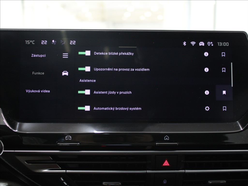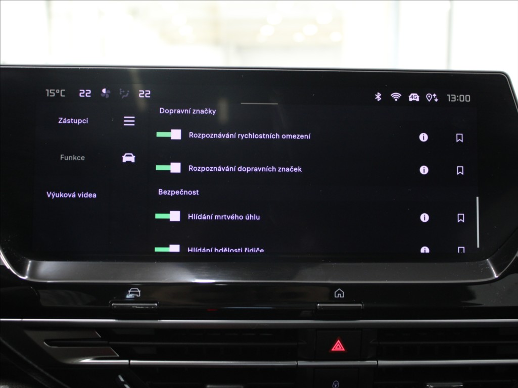 | Nadstandardní výbava: | originál autorádio, Android Auto, Apple CarPlay, satelitní navigace, bluetooth, USB, hands free, head-up display, el. okna, el. přední okna, el. zrcátka, el. sklopná zrcátka, el. víko zavazadlového prostoru, el. seřiditelná sedadla, zatmavená zadní skla, vyhřívaný volant, potahy kůže, kožené čalounění, kožená sedadla, vyhřívaná sedadla, hlídání jízdního pruhu, hlídání mrtvého úhlu, multifunkční volant, parkovací senzory přední, parkovací senzory zadní, parkovací kamera, senzor stěračů, senzor světel, adaptivní tempomat, brzdový asistent, ABS, stabilizace podvozku (ESP), protiprokluzový systém kol (ASR), aut. převodovka, denní svícení, přední světla LED, zadní světla LED, mlhovky, centrál dálkový, startování tlačítkem, bezklíčové startování a odemykání, paměť nastavení sedadla řidiče, panoramatická střecha, střešní okno, záruka, isofix, plní 'EURO VI', digitální přístrojový štít, volba jízdního režimu, hlídání provozu při couvání (RCTA), dvouzónová klimatizace, 360° monitorovací systém (AVM), 6x airbag, bezdrátová nabíječka mobilních telefonů, | |