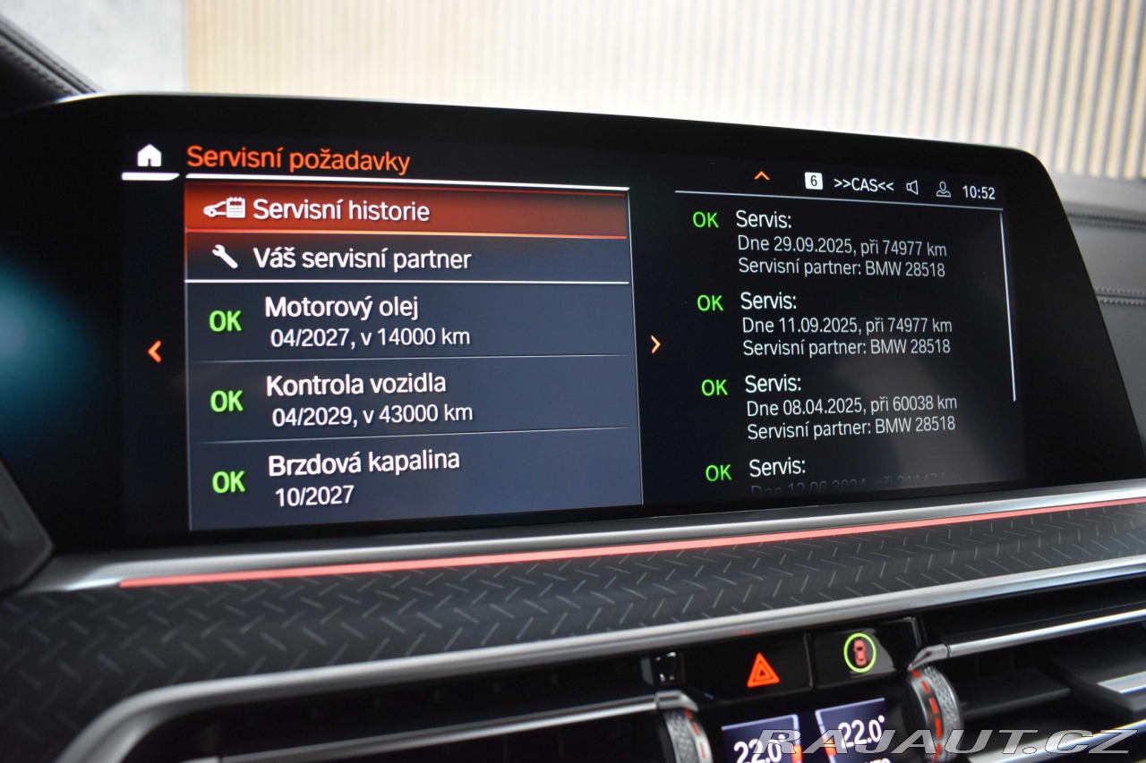 | Doplňující popis: | Vozidlo v záruce do 2028! Registrované jako nové v ČR, s možností odpočtu DPH. Pravidelně servisováno, příští servisní interval v 04/2027 nebo 14000 km. Historie vozidla prověřena společností CEBIA, na vyžádání lze zaslat Cebia report mailem. Z volitelné výbavy: barva: special paint - kód 0490, M aerodynamický paket, M sportovní paket, Paket Heat Comfort, vpředu, 8stupňová sportovní automatická převodovka Steptronic včetně Automatic Hold funkce a řadicích pádel na volantu, Adaptivní M podvozek, Akustická izolace bočních oken, Elektricky ovládané tažné zařízení (nosnost do 3,5 t), BMW Head-Up Display, BMW Individual kožená přístrojová deska (horní část přístrojové desky a horní část obložení dveří), Manuálně ovládané rolovací sluneční clony zadních bočních oken, M Shadowline černé vysoce lesklé podélné střešní nosníky, Vyhřívání sedadel vpředu a vzadu, Laserové světlomety BMW Laserlight, M sportovní výfukový systém, 22" BMW Individual kola z lehké slitiny V-spoke 746 I s kombinovanými pneumatikami, Orbit Grey, Nezávislé topení, Harman Kardon Surround Sound System – 16 reproduktorů (464 W) a mnoho dalšího. Tato nabídka má pouze informativní charakter a neslouží jako podklad pro uzavření objednávky. STOP CARS s.r.o. si vyhrazuje právo uzavření všech smluvních vztahů písemně. | |