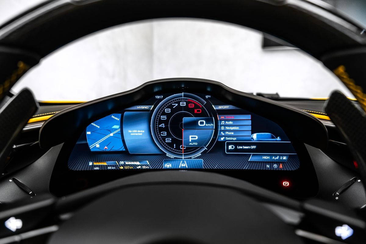 | Doplňující popis: | Ostrava, 'SCUDERIA FERRARI' SHIELDS ,ELECTROCHROMIC REAR-VIEW MIRROR FRONT AND REAR PARKING SENSORS ,PIP8 IN EXTRARANGE ALCANTARA GIALLO RAVELLO ,PASSENGER COMPARTMENT INSERTS IN ALCANTARA ,GLOSSY WHEELS ,20 PAINTED FORGED WHEELS ,CUSTOM SPECIFICATIONS STC2 IN SPECIAL THREAD ,COLOURED SPECIAL STITCHING O.R. ,SEATS WITH SPECIAL DESIGN WHEEL STUD BOLTS IN TITANIUM WIRELESS SMARTPHONE CHARGER ,ADAPTIVE FRONTLIGHT SYSTEM ,INNER DETAILS IN COLOURED ALCANTARA ,SPEC ALCANTARA SEATS ,ALDT IN EXTRARANGE ALCANTARA ,TWO-TONE BODYWORK ,YELLOW BRAKE CALLIPERS ,MYFERRARI CONNECT ACTIVATED ,COLOURED SEAT BELTS ,FRONT LIFT ,CAVALLINO STITCHED ON HEADREST EMPH IN SPECIAL THREAD ,BLACK TAILPIPE TIPS ,MYFERRARI CONNECT READINESS HW CARB. FIB. STEERING WHEEL + LEDS *** zmena výbavy vyhradená *** | |