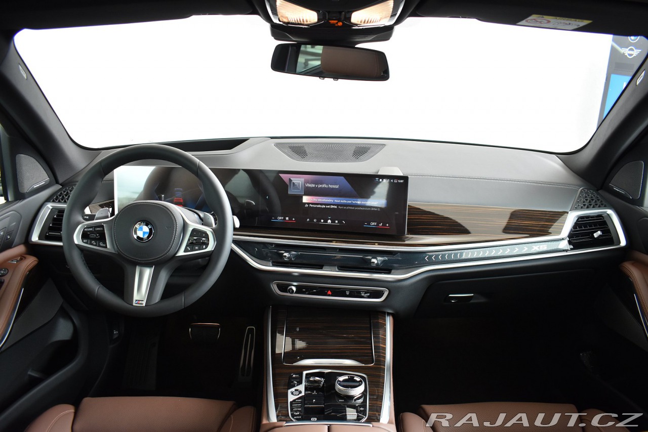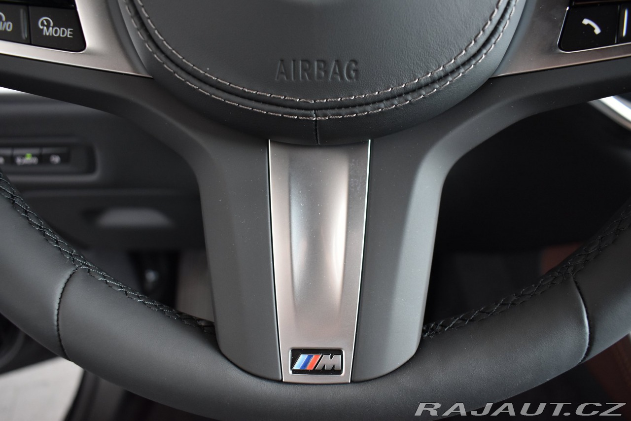 | Nadstandardní výbava: | Osobní karta eSIM (integrace vozu do digitálního ekosystému zákazníka), Česká jazyková verze, M aerodynamický paket, M sportovní paket, M sportovní paket Pro, Paket "Zavazadlový prostor", Paket Ambient Air, Paket Comfort, Paket Heat Comfort, vpředu, Paket Innovation, Paket Travel, Paket zrcátek, Travel & Comfort System, Metalický lak "Black Sapphire", 21 M kola z lehké slitiny V-spoke 915 M Bicolour s kombinovanými pneumatikami, runflat, Midnight Grey, Bezpečnostní šrouby kol, Dojezdové pneumatiky Runflat, M sportovní brzdy s červenými třmeny, BMW Individual kůže Merino "Coffee/Black", M čalounění stropu v barvě antracitu, Dřevěné obložení interiéru Fineline Stripe, vysoce lesklé, Mild hybridní technologie, Sportovní automatická převodovka, Alarm, Ambientní osvětlení, Automatické uzamčení při rozjezdu, BMW Individual střešní podélné nosníky v provedení High-gloss Shadow Line, COC Zusatzumfänge (Doplňkové položky (výbavy) uvedené v Prohlášení o shodě), Držák nápojů včetně chlazení/vyhřívání, Elektricky ovládané tažné zařízení, Komfortní přístupový systém, Přihrádka pro bezdrátové nabíjení, Síť zavazadlového prostoru, Tachometr v km, M sportovní kožený volant, Skleněné prvky interiéru "CraftedClarity", Velurové koberečky, BMW ledvinky "Iconic Glow", M Shadowline černé vysoce lesklé okenní lišty, M Shadowline černé vysoce lesklé okenní lišty s rozšířeným obsahem, M sportovní výfukový systém, Active Guard, Aktivní ochrana chodců, BMW Intelligent Emergency Call - tísňové volání (manuální / automatické volání v případě nouze), M bezpečnostní pásy, Ochranná přepravní sada, Parking Assistant Professional, Ukazatel tlaku v pneumatikách, Varovný trojúhelník a lékárnička, Adaptivní LED světlomety včetně LED světel pro odbočování a BMW Selective Beam, Adaptivní LED světlomety včetně neoslňujícího asistenta dálkových světlometů BMW Selective Beam, High-beam Assistant - asistent dálkových světel, M Shadowline zatmavené světlomety, Panoramatické skleněné střešní okno, Rolovací sluneční clony pro zadní boční okna, Nezávislé topení, Zvýšená protisluneční ochrana oken (od B-sloupku), Aktivní ochrana, Driving Assistant Professional, Aktivní ventilace předních sedadel, Komfortní elektricky nastavitelná přední sedadla, Vyhřívání sedadel vpředu a vzadu, BMW Live Cockpit Professional, ConnectedDrive Services - přístup na Online portál a integrace aplikací, Paket Connected Professional, Teleservices - manuální/automatické zasílání informací o stavu vozu a úrovni nabití baterie, DAB tuner (digitální příjem rádia), Harman Kardon Surround Sound System, DAB tuner (digitální příjem rádia), DAB tuner (digitální příjem rádia), Chladicí médium, Emisní norma EU6 RDE II, Manuál a servisní knížka v ČJ, Repair Inclusive - 3 roky / 200 000 km, Servisní interval pro výměnu oleje – 24 měsíců / 30 000 km, Adaptivní vzduchové odpružení na obou nápravách | |