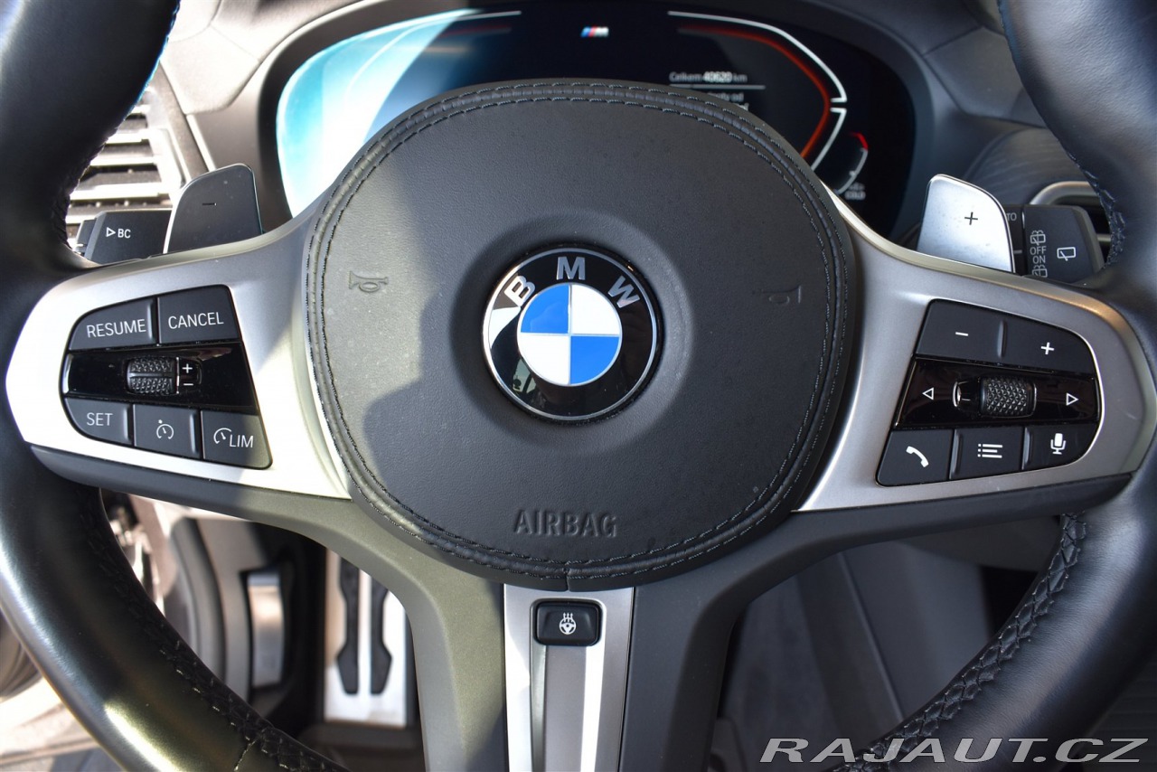 | Nadstandardní výbava: | Česká jazyková verze, M aerodynamický paket, M sportovní paket, Paket Connected Professional, Paket zrcátek, Metalický lak Sophisto Grey (šedá) s briliantovým efektem, 20 M kola z lehké slitiny Double-spoke 699 M Jet Black s kombinovanými pneumatikami, Bezpečnostní šrouby kol, M sportovní brzdy s červenými třmeny, Sada na opravu pneumatik, Kůže Vernasca Black s dekorativním prošíváním/Black, M čalounění stropu v barvě antracitu, Mild hybridní technologie, Sportovní automatická převodovka, Akustická izolace předních bočních oken, Alarm, Ambientní osvětlení, BMW Individual střešní podélné nosníky v provedení High-gloss Shadow Line, Komfortní přístupový systém, Palivová nádrž se zvětšeným objemem, Síť zavazadlového prostoru, Tachometr v km, M sportovní kožený volant, Vyhřívání volantu, Dřevěné obložení jasan s otevřenými póry, Kožená přístrojová deska, Velurové koberečky, M Shadowline černé vysoce lesklé okenní lišty, Active Guard, Aktivní ochrana chodců, BMW Intelligent Emergency Call, Deaktivace airbagu spolujezdce, Ochranná přepravní sada, Ukazatel tlaku v pneumatikách, Varovný trojúhelník a lékárnička, BMW laserové světlomety, High-beam Assistant - asistent dálkových světel, Vnitřní zpětné zrcátko s automatickým tlumením odrazivosti, Automatická klimatizace, Zvýšená protisluneční ochrana oken (od B-sloupku), Parkovací asistent, Performance Control - systém pro zvýšení dynamiky jízdy při průjezdu zatáčkou, Elektricky nastavitelná ventilovaná přední sedadla včetně pamětí u řidiče, Vyhřívání sedadel vpředu a vzadu, Bez funkce Digital Key, BMW Gesture Control - ovládání vybraných funkcí vozu gesty, BMW Live Cockpit Professional, ConnectedDrive Services - přístup na Online portál a integrace aplikací, Dočasné smazání konkrétního Bluetooth/WiFi funkce, příprava na RSU, Příprava pro mobilní telefon Bluetooth, USB, hlasové ovládání, konektivita, Teleservices - manuální/automatické zasílání informací o stavu vozu a úrovni nabití baterie, WiFi hotspot, DAB tuner (digitální příjem rádia), HiFi systém, HiFi systém, HiFi systém, DAB tuner (digitální příjem rádia), DAB tuner (digitální příjem rádia), Chladicí médium, Manuál a servisní knížka v ČJ, Servisní interval pro výměnu oleje – 24 měsíců / 30 000 km, Adaptivní podvozek | |