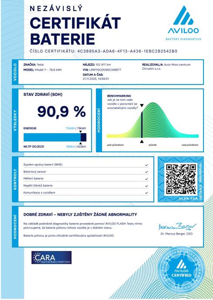 | Doplňující popis: | Prodáno Tesla Model Y Dual Motor Long Range 378 kW SOH 90, 9% - EAP, dovoz: EU, VIN: LRWYGCEK4NC346677, elektro, baterie 78, 8 kWh, do provozu: 27.6.2022, najeto: 102913 km, pohon kol: 4x4, automatická převodovka, STK do: 11/2027, WLTP 560 km, klimatizace, tepelné čerpadlo, vyhřívaná přední i zadní sedadla, vyhřívaný volant, parkovací kamera, procesor AMD RYZEN, EAP POKROČILÝ AUTOPILOT, tepelné čerpadlo, MATRIX SVĚTLOMETY, BOOM BOX. Záruka na Akumulátor a hnací ústrojí 8 let nebo po ujetí 192.000 km (podle toho, co nastane dříve). *MOŽNOST VYKOUPENÍ VAŠEHO STARÉHO VOZU PROTIÚČTEM* *MOŽNOST VÝHODNÉHO FINANCOVÁNÍ už bez nulové akontace* Pro nezávaznou kalkulaci nás neváhejte kontaktovat. Nutno vždy volat předem! Prohlídky možné i mimo pracovní dobu tel. 732710796 Mates auto. Nejedná se o návrh na uzavření smlouvy (nabídku) dle § 1731 zákona č. 89/2012 Sb., občanský zákoník, ale o nezávaznou nabídku., | |