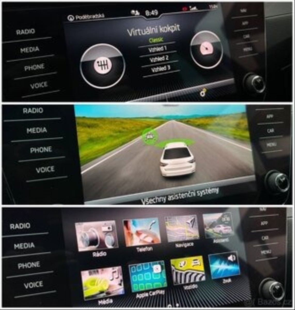 | Nadstandardní výbava: | ABS, adaptivní tempomat, Android Auto, Apple CarPlay, aut. klimatizace, aut. převodovka, bluetooth, brzdový asistent, centrál dálkový, deaktivace airbagu spolujezdce, denní svícení, digitální příjem rádia (DAB), el. okna, el. přední okna, el. seřiditelná sedadla, el. sklopná zrcátka, el. zrcátka, hands free, kožené čalounění, mlhovky, multifunkční volant, palubní počítač, paměťová karta, parkovací kamera, parkovací senzory přední, parkovací senzory zadní, potahy kůže, protiprokluzový systém kol (ASR), satelitní navigace, senzor stěračů, senzor světel, stabilizace podvozku (ESP), start-stop systém, startování tlačítkem, USB, vyhřívaná sedadla, vyhřívaný volant, výškově nastavitelná sedadla, výškově nastavitelné sedadlo řidiče, zatmavená zadní skla, | |