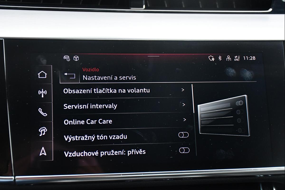| Nadstandardní výbava: | pohon 4x4, aut. převodovka, 12x airbag, aktivní kapota, ABS, brzdový asistent, stabilizace podvozku (ESP), protiprokluzový systém kol (ASR), nouzové brzdění (PEBS), asistent rozjezdu do kopce (HSA), ukazatel rychlostního limitu (SLIF), hlídání jízdního pruhu, asistent jízdy v koloně, asistent změny jízdního pruhu, asistent jízdy v jízdním pruhu, sledování únavy řidiče, regulace výšky podvozku, posilovač řízení, čtyřzónová klimatizace, dvouzónová klimatizace, aut. klimatizace, adaptivní tempomat, LED adaptivní světlomety, LED denní svícení, automatické přepínání dálkových světel, alu kola, palubní počítač, hlasové ovládání palubního počítače, dotykové ovládání palubního počítače, digitální přístrojový štít, volba jízdního režimu, elektronická ruční brzda, satelitní navigace, hlídání provozu při couvání (RCTA), parkovací senzory přední, parkovací senzory zadní, parkovací asistent, parkovací kamera, automatické parkování, bezklíčové startování, bezklíčové odemykání, senzor světel, senzor stěračů, nastavitelný volant, multifunkční volant, řazení pádly pod volantem, deaktivace airbagu spolujezdce, hands free, Android Auto, Apple CarPlay, bezdrátová nabíječka mobilních telefonů, bluetooth, el. víko zavazadlového prostoru, el. okna, el. sklopná zrcátka, el. zrcátka, samostmívací zrcátka, startování tlačítkem, imobilizér, centrál dálkový, centrální zamykání, potahy kůže, isofix, kožené čalounění, ambientní osvětlení interiéru, vyhřívaná sedadla, el. seřiditelná sedadla, sedadla s funkcí masáže - přední, odvětrávaná sedadla, výškově nastavitelná sedadla, polohovací sedadla, senzor tlaku v pneumatikách, senzor opotřebení brzdových destiček, přední světla LED, zadní světla LED, aut. aktivace výstražných světlometů, mlhovky, USB, autorádio, digitální příjem rádia (DAB), venkovní teploměr, vyhřívaná zrcátka, zadní loketní opěrka, vnitřní teploměr, zadní stěrač, tónovaná skla, zatmavená zadní skla, roletky na zadních oknech, pérování vzduch, záruka, digitální přístrojová deska, vyhřívaná zadní sedadla, | |
