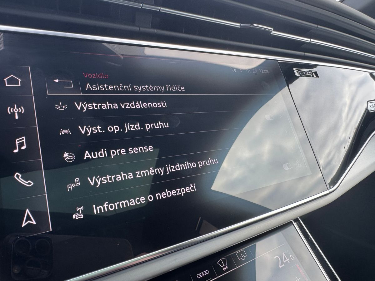 | Nadstandardní výbava: | bluetooth, senzor tlaku v pneumatikách, hlídání mrtvého úhlu, senzor opotřebení brzdových destiček, elektronická ruční brzda, imobilizér, bezklíčové odemykání, bezklíčové startování, start-stop systém, palubní počítač, USB, satelitní navigace, digitální přístrojový štít, dotykové ovládání palubního počítače, autorádio, Apple CarPlay, multifunkční volant, vyhřívaný volant, nastavitelný volant, klimatizovaná přihrádka, roletky na zadních oknech, zadní loketní opěrka, výškově nastavitelné sedadlo řidiče, výškově nastavitelná sedadla, vyhřívaná sedadla, sedadla s funkcí masáže - přední, odvětrávaná sedadla, sportovní sedadla, isofix, el. seřiditelná sedadla, zadní stěrač, denní svícení, zadní světla LED, automatické přepínání dálkových světel, mlhovky, alu kola, el. zrcátka, vyhřívaná zrcátka, el. sklopná zrcátka, senzor stěračů, el. přední okna, el. okna, tónovaná skla, el. víko zavazadlového prostoru, el. dovírání dveří, centrální zamykání, řazení pádly pod volantem, pérování vzduch, panoramatická střecha, čtyřzónová klimatizace, centrál dálkový, dělená zadní sedadla, head-up display, adaptivní tempomat, 360° monitorovací systém (AVM), parkovací senzory zadní, tažné zařízení, venkovní teploměr, stabilizace podvozku (ESP), protiprokluzový systém kol (ASR), pohon 4x4, aut. převodovka, plní 'EURO VI', asistent jízdy v jízdním pruhu, hlídání jízdního pruhu, ABS, | |