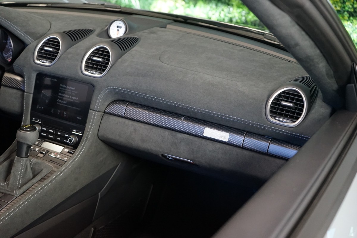 | Doplňující popis: | AS251485 Ochrana vozu: Exteriér vozu potažen keramickou ochrannou laku Záruka: Vůz je v plnohodnotné tovární záruce. Výbava: Barva: Arctic šedá, Čalounění: Interiér Weissach,paket s rozsáhlými položkami v kůži a Race,Tex, 20 kovaná hliníková kola 718 Cayman GT4 RS, Kola lakovaná v Indigo modré, Porsche Exclusive Manufaktur, Černě lakované brzdové třmeny s nápisem PORSCHE, LED hlavní světlomety Porsche Dynamic Light Systém (PDLS), Interiérové obložení s dekoračním prošíváním a vyšívajícími detaily v kontrastní barvě, Chrono Paket, Systém zdvihu přední nápravy, Zadní parkovací asistent včetně zadní parkovací kamery, Tempomat, Převodovka Porsche Doppelkupplung (PDK), Hlasové ovládání, Systém monitorování tlaku v pneumatikách (TPM) s Track módem, Skořepinová sedadla, Porsche Active Suspension Management (PASM) aktivní systém odpružení, Porsche Torque Vectoring (PTV) se samosvorným zadním diferenciálem, Volant s vyznačenou žlutou značkou v horní části, PDK volič jízdních režimů Race,Tex, Ochranné lišty prahů dveří v karbonu, Dvouzónová automatická klimatizace, Porsche Communication Management (PCM) včetně přípravy pro mobilní telefon a audio rozhraní, DAB,Tuner, USB porty, Sportovní design pedálů, LED denní svícení, Vnější zpětná zrcátka z carbonu, Elektricky ovládaná vnější zpětná zrcátka, Sportovní výfukový systém, Nastavení tuhosti tlumičů, Satelitní navigace, Bluetooth, Logo Porsche vyražené na loketní opěrce, Černá látková střecha s akcenty v Arctic šedé s prvky v kontrastní barvě, BOSE® Surround Sound Systém, Ciferník Chrono stopek v Bílé Porsche Exclusive Manufaktur, Palivová nádrž na 90 litrů, Přední víko v karbonové úpravě s částečným lakováním Porsche Exclusive Manufaktur, Weissach Package | |