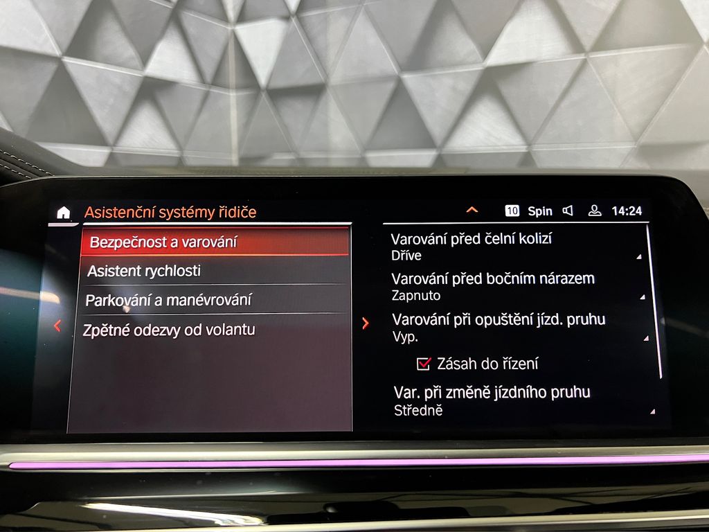 | Nadstandardní výbava: | natáčecí světlomety, automaticky zatmavovací zrcátka, autorádio, AUX, bezdrátová nabíječka mobilních telefonů, bezklíčové startování, bezklíčové odemykání, bluetooth, centrální zamykání, centrál dálkový, dělená zadní sedadla, denní svícení, el. seřiditelná sedadla, el. dovírání dveří, el. víko zavazadlového prostoru, el. zrcátka, el. sklopná zrcátka, vyhřívaná zrcátka, head-up display, dvouzónová klimatizace, klimatizovaná přihrádka, zadní světla LED, alu kola, sedadla s funkcí masáže - řidič, sedadla s funkcí masáže - přední, multifunkční volant, satelitní navigace, palubní počítač, el. přední okna, mlhovky, přední světla LED, USB, adaptivní tempomat, start-stop systém, tažné zařízení, vyhřívaná sedadla, el. okna, výškově nastavitelná sedadla, vyhřívaný volant, vyhřívaná sedadla, ABS, aut. aktivace výstražných světlometů, automatické parkování, aut. zabrzdění v kopci, brzdový asistent, deaktivace airbagu spolujezdce, stabilizace podvozku (ESP), hlídání mrtvého úhlu, imobilizér, isofix, senzor tlaku v pneumatikách, nouzové brzdění (PEBS), 360° monitorovací systém (AVM), protiprokluzový systém kol (ASR), regulace rychlosti při jízdě ze svahu, senzor opotřebení brzdových destiček, senzor stěračů, sledování únavy řidiče, aut. uzávěrka diferenciálu, aut. klimatizace, alarm, EDS, ostřikovače světlometů, nezávislé topení, regulace tuhosti podvozku, | |