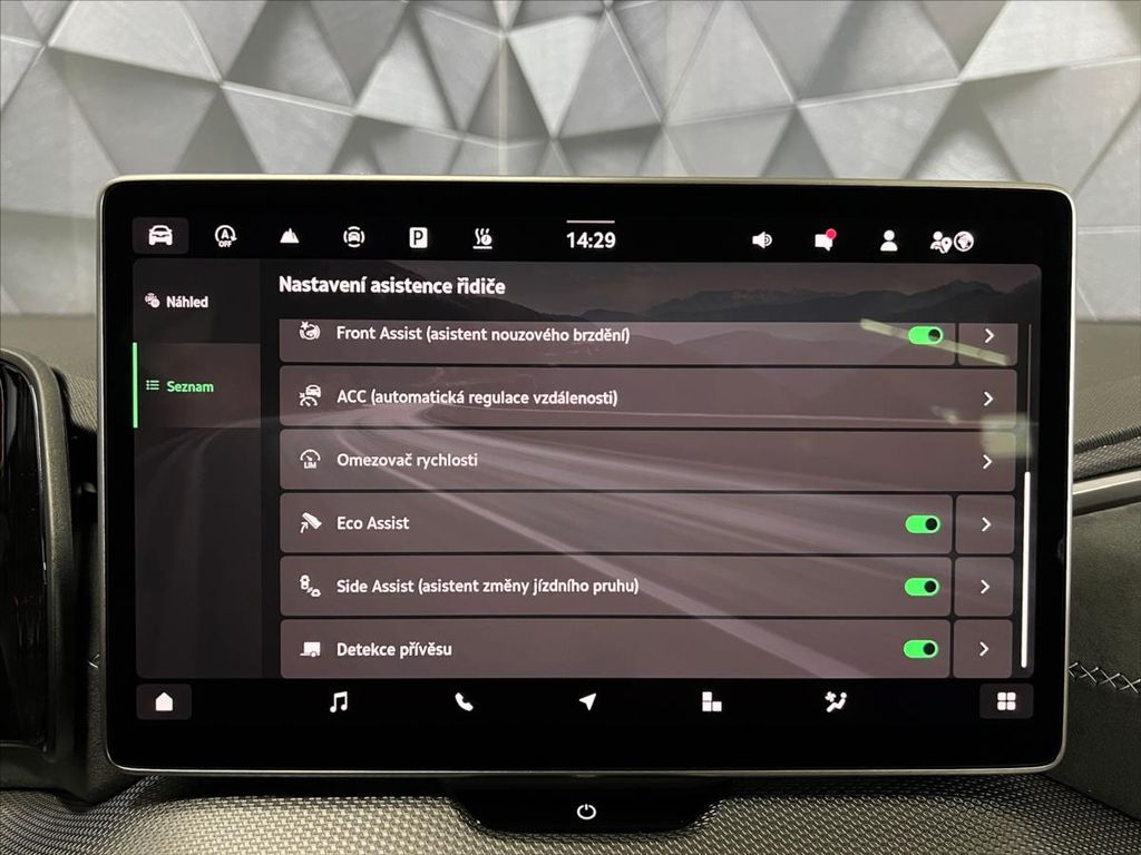 | Nadstandardní výbava: | 360° monitorovací systém (AVM), ABS, adaptivní tempomat, airbag řidiče, alarm, aut. zabrzdění v kopci, asistent stability přívěsu (TSA), aut. aktivace výstražných světlometů, aut. klimatizace, aut. uzávěrka diferenciálu, automatické parkování, autorádio, AUX, bezdrátová nabíječka mobilních telefonů, bezklíčové odemykání, bezklíčové startování, bluetooth, brzdový asistent, centrál dálkový, centrální zamykání, deaktivace airbagu spolujezdce, dělená zadní sedadla, denní svícení, EDS, el. seřiditelná sedadla, el. sklopná zrcátka, el. víko zavazadlového prostoru, el. zrcátka, hlídání mrtvého úhlu, imobilizér, isofix, klimatizovaná přihrádka, natáčecí světlomety, přední světla LED, mlhovky, multifunkční volant, nouzové brzdění (PEBS), ostřikovače světlometů, palubní počítač, panoramatická střecha, parkovací senzory zadní, protiprokluzový systém kol (ASR), přední světla LED, regulace rychlosti při jízdě ze svahu, regulace tuhosti podvozku, automaticky zatmavovací zrcátka, satelitní navigace, senzor opotřebení brzdových destiček, senzor stěračů, senzor světel, senzor tlaku v pneumatikách, sledování únavy řidiče, sportovní sedadla, stabilizace podvozku (ESP), start-stop systém, střešní nosič, střešní šíbr el., třízónová klimatizace, USB, vyhřívaná sedadla, vyhřívaná zrcátka, vyhřívané přední sklo, vyhřívaný volant, výškově nastavitelná sedadla, zadní světla LED, automaticky zatmavovací zrcátka, alu kola, el. přední okna, el. okna, vyhřívaná sedadla, tažné zařízení, | |