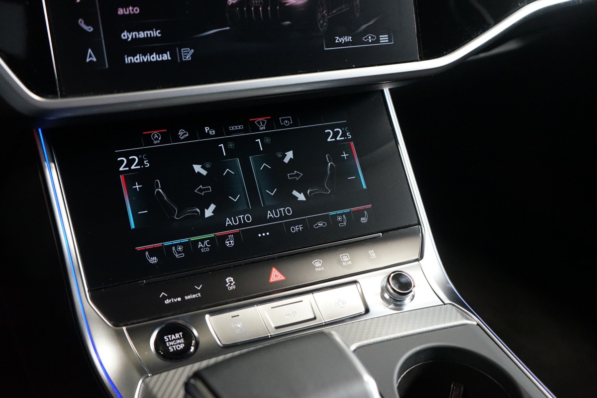 | Doplňující popis: | AS250951 Záruka: Plnohodnotná záruka na 4 roky / 120 000 km. Ochrana: Vůz je kompletně ochráněn fólií PPF. Výbava: Barva: Černá Mythos, metalický lak Čalounění: Černá kůže Valcona/ kůže Milano / skálově šedé prošití 20 litá kola, 10 paprsků do V Brzdy 17 ocelové Adaptivní stěrače s integrovaným ostřikem skel Akustická skla pro okna dveří a boční skla 4zónovou komfortní klimatizaci Servomechanické dovírání dveří Asistenční paket Tour Asistent dálkových světel Multifunkční sportovní volant, 3ramenný, s pádly řazení Světlomety HD Matrix LED Automatická,dynamická regulace dosahu světlometů Asistent hlídání mrtvého úhlu Audi presense Audi smartphone interface 360° kamery Komfortní klíč bez funkce Safelock Elektricky nastavitelná přední sedadla s paměťovou funkcí pro sedadla vpředu Ambientní a konturní osvětlení interiéru Asistenční paket Plus Paket parkovacích asistenčních systémů Asistenční paket City Asistenční paket Tour Audi phone box Bang & Olufsen Premium Sound System s 3D Boční airbagy vpředu a vzadu včetně Dekorace z hliníku Fragment Dynamické řízení všech kol Elektrické nastavení polohy volantu Vyhřívaný volant Odvětrávací a masážní funkce vpředu Head,up displej Interiér allroad Nezávislé topení a větrání Paket exteriéru v hliníkové optice Paket odkládacích prostor Plné lakování Prvky interiérové výbavy vrchní a spodní v kožence Sluneční clony pro řidiče a spolujezdce, posuvné Tažné zařízení USB porty s nabíjecí funkcí pro zadní Vnější zpětná zrcátka elektricky nastavitelná, vyhřívaná a sklopná Oboustranně stmívatelná zpětná zrcátka Vyhřívání sedadel vpředu a vzadu Zatmavená skla v kombinaci s dvojitými akustickými skly Čalounění stropu z černé tkaniny | |