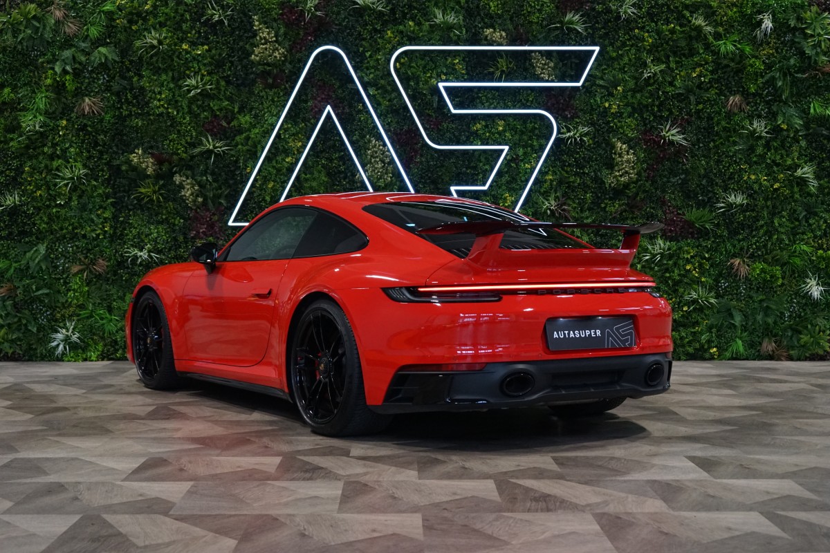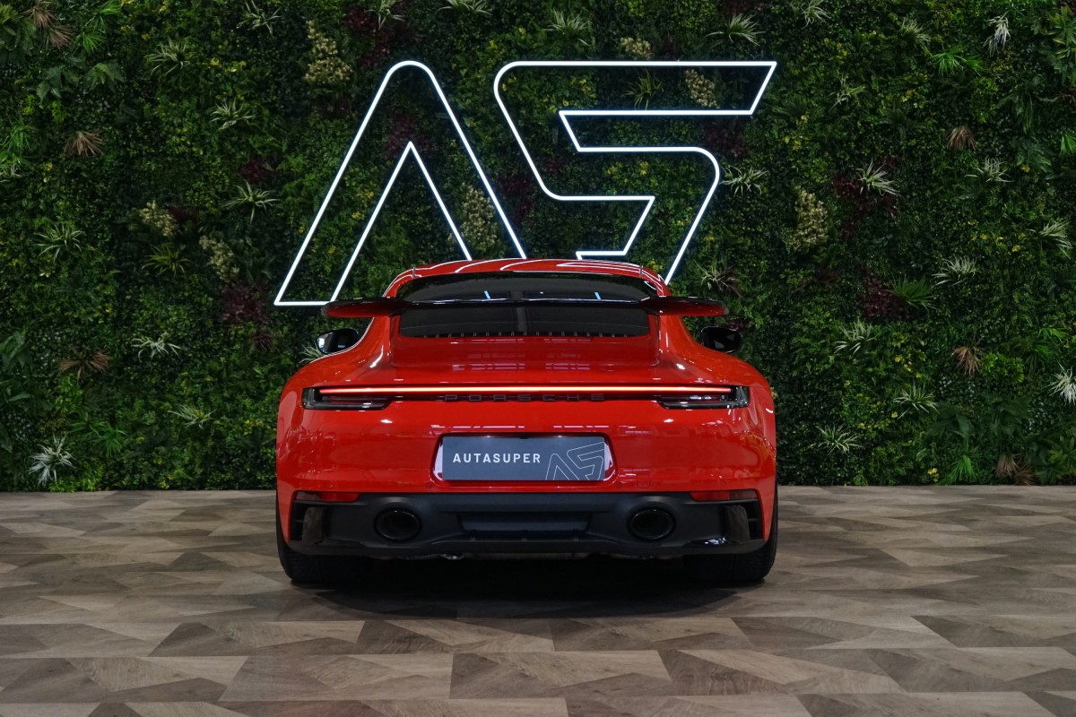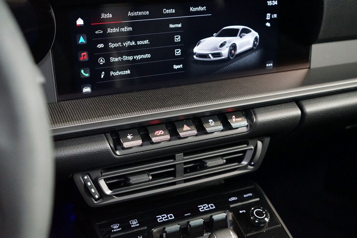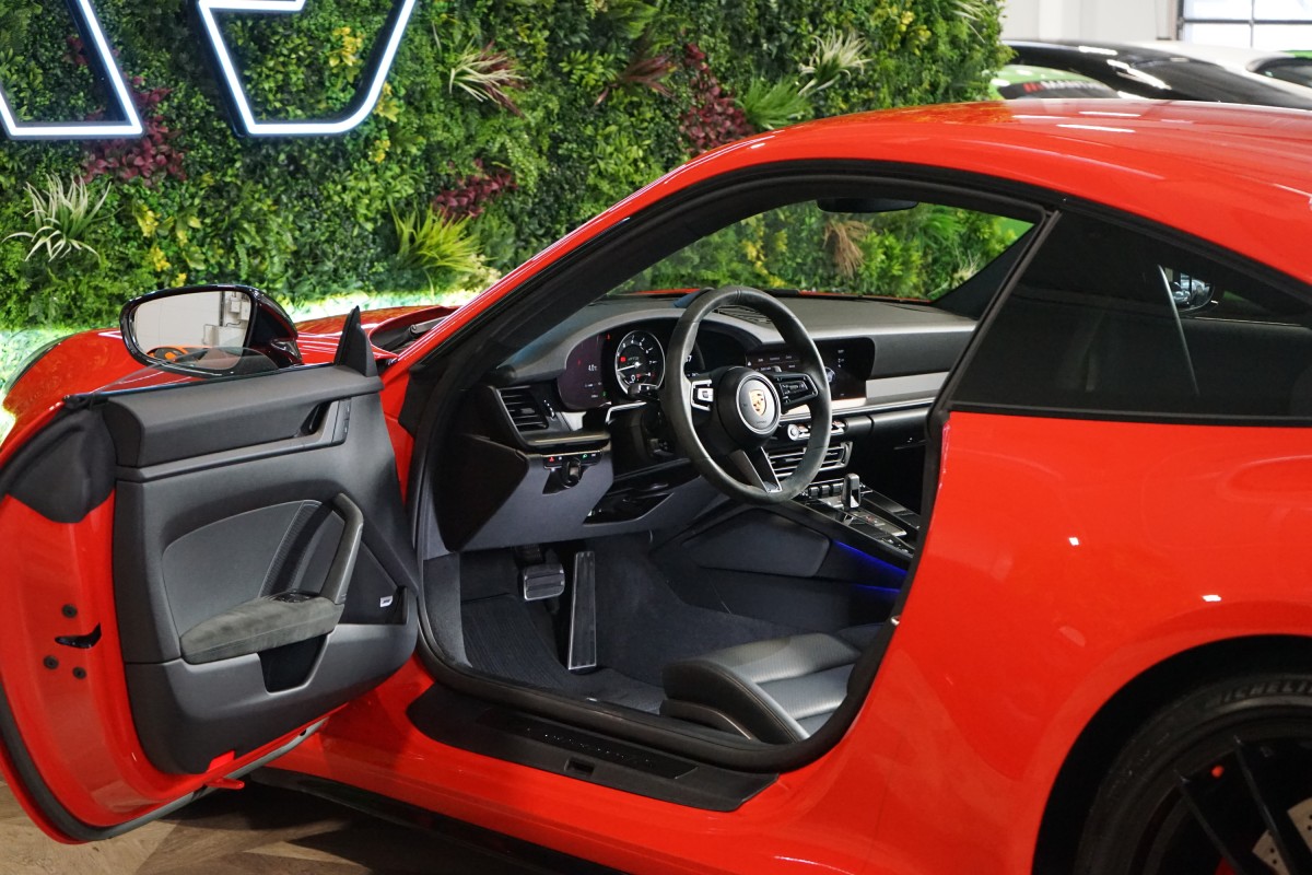 | Doplňující popis: | AS221844 Exteriér vozidla potažen ochrannou PPF fólií. Výbava: Barva: Červená Carmine, 20/21 kola Carrera GTS Červeně lakované brzdové třmeny, Standardní interiér v barvě černá, Porsche Entry & Drive (Bezklíčový přístup a start), Přepínač režimů, Sport Chrono stopky, Odvětrávaná přední sedadla, Vyhřívaná přední sedadla, 2 zónová automatická klimatizace, 8 rychlostní Porsche Doppelkupplung (PDK), Brzdový systém s brzdovými třmeny v červené barvě, Sportovní výfukový systém (koncovky v černé barvě), Interiérový paket z matného karbonu, Bez loga 'GTS' na bočních dveřích, Elektricky sklopná vnější zpětná zrcátka, Exkluzivní design zadních světel, BOSE® Surround Sound System, ParkAssist (vpředu a vzadu) vč. couvací kamery, Automaticky stmívací vnitřní a vnější zpětná zrcátka s integrovaným dešťovým senzorem, Úložný paket, Tempomat, Paket designového osvětlení, HomeLink®, DAB,Tuner, Aktivní udržování v jízdním pruhu, Sportovní volant GT potažený kůží, Apple CarPlay, Android Auto, Satelitní navigace Nejmladší generace Porsche 911 s označením 992 se vyrábí od roku 2019, kdy nahradila předchozí generaci 991. Jednou z hlavních výhod této řady je mimořádně široká nabídka variant. Základ tvoří modely Carrera, zatímco vrchol se dělí na dvě větve – komfortněji laděné Turbo a na okruhy orientované GT3. Mezi nimi stojí verze GTS, která je v prodeji od roku 2021 a snaží se skloubit to nejlepší z obou světů. Za zadní nápravou se ukrývá 3.0litrový plochý šestiválec boxer, přeplňovaný dvojicí turbodmychadel. Motor disponuje výkonem 480 koní při 6500 ot./min. a točivým momentem 570 Nm v rozmezí 2300 až 5000 ot./min. Na zadní kola je výkon přenášen přes osmistupňovou dvouspojkovou převodovku PDK. Zrychlení z 0 na 100 km/h proběhne za 3.4 sekundy, což GTS řadí mezi mnohem výkonnější supersporty. Maximální rychlost činí 312 km/h. | |