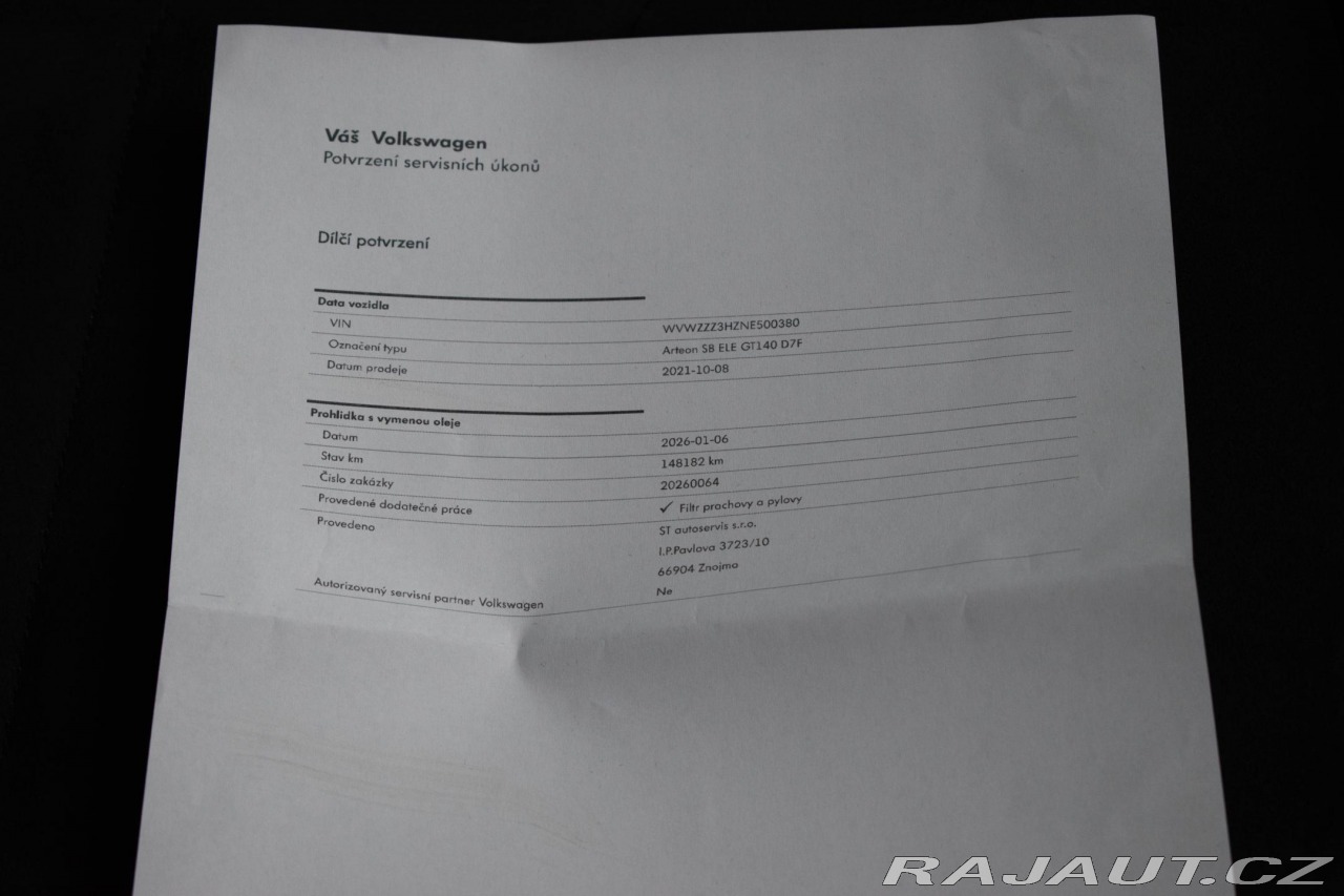 | Doplňující popis: | Vozidlo registrované jako nové v ČR od 1.majitele, s možností odpočtu DPH. Pravidelně servisováno, aktuálně po servisním intervalu, ve 133 729 km provedena výměna předních brzdových kotoučů a destiček, ve 118 440 km provedena výměna oleje v DSG. Historie vozidla prověřena společností CEBIA, na vyžádání lze zaslat Cebia report mailem. Z volitelné výbavy: Paket Assistance, Side Assist a PreCrash Plus Side Assist, Tažné zařízení; elektricky výklopné, Zpětná kamera, Vyhřívané čelní sklo reflektující infračervené záření, Zatmavená zadní okna, Zpětné zrcátko s automatickou clonou, Vyhřívaná přední sedadla, Elektricky nastavitelná vyhřívaná zpětná zrcátka, Rozpoznávání dopravních značek, Vyhřívané ostřikovače, Tempomat se senzory vzdálenosti a funkce stop & go, Stěrače: s dešťovým sensorem, Integrace mobilního telefonu Apple CarPlay, Android Auto, MirrorLink, Elektrický posilovač řízení s progresivním účinkem, Elektrické zavírání víka zavaz. prostoru, Dynamické řízení, Bluetooth s podporou streamingu, Autonomní řízení úplné a aktivní kontrola jízdního pruhu, Asistent rozjezdu do kopce, Varování při opuštění jízdního pruhu, Systém varování před nehodou, Multikolizní brzdění, Elektronické rozdělení brzdné síly EBD. Tato nabídka má pouze informativní charakter a neslouží jako podklad pro uzavření objednávky. STOP CARS s.r.o. si vyhrazuje právo uzavření všech smluvních vztahů písemně. | |