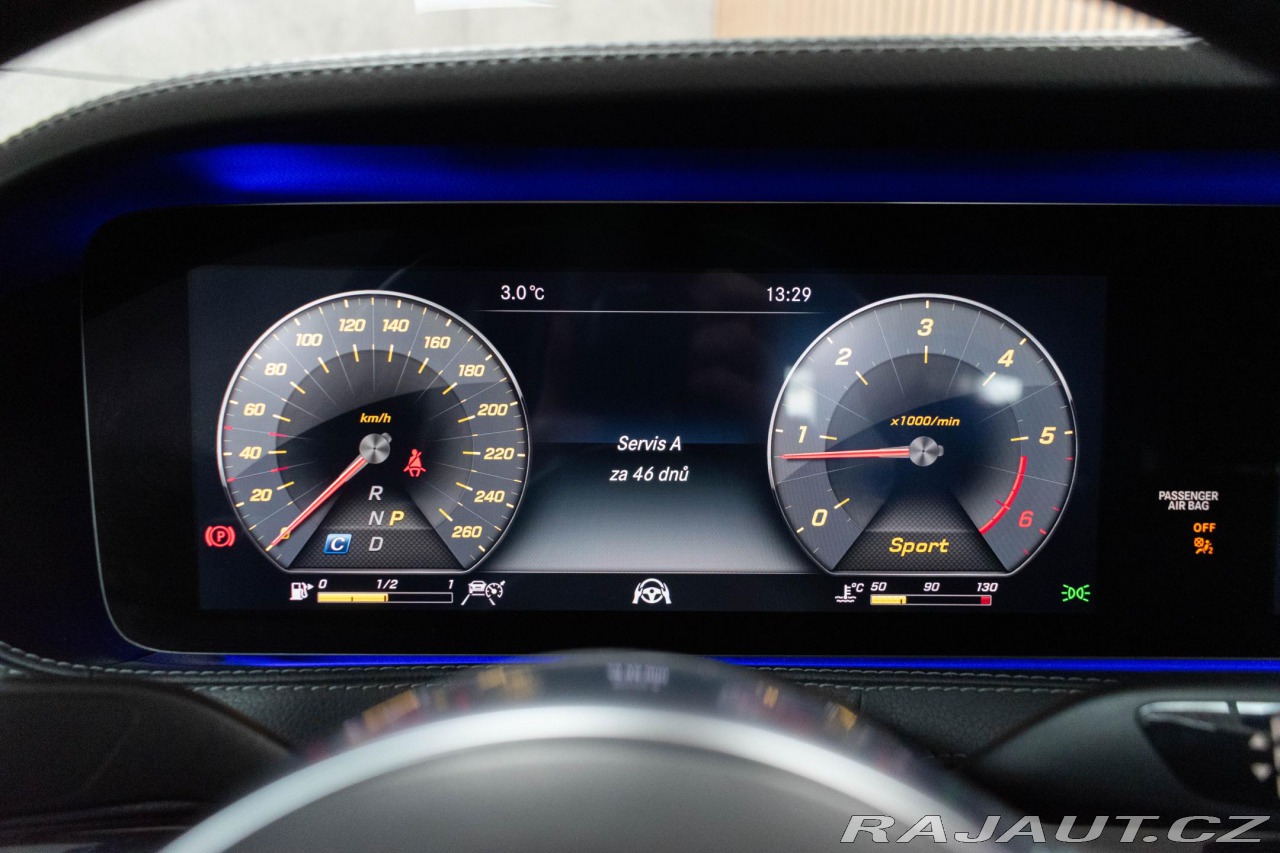 | Doplňující popis: | Vozidlo registrované jako nové v Německu, do ČR dovezeno v únoru 2021 s nájezdem 146 000 km kde bylo po celou dobu užíváno pouze jedním majitelem. Pravidelně servisováno, příští servisní interval za 46 dnů. Historie vozidla prověřena společností CEBIA, na vyžádání lze zaslat Cebia report mailem. Z volitelné výbavy: Adaptivní asistent dálkového světla Plus, Aktivní asistent rychlostního omezení, Aktivní asistent změny jízdního pruhu, Aktivní parkovací asistent, AMG-Styling, Asistent identifikace dopravních značek, Bezdrátové nabíjení telefonu vpředu a anténa, Dálkové zavírání víka zavazadlového prostoru, Digitální rádio-Standard DAB (Digital Audio Broadcast), Elektrická sluneční roleta v levých a pravých zadních dveřích, Elektrické nastavení zadních opěradel a opěrek hlavy, Elektricky ovládaná sluneční roleta pro zadní okno, HANDS-FREE ACCESS, HERMES, Integrace smartphonu, Jízdní paket, Kamera 360°, KEYLESS GO, Klimatizace předního sedadla, Klimatizace zadních sedadel, Komfortní opěrky hlavy řidiče a spolujezdce, Komfortní topný paket vpředu a vzadu, Komfortní vyhřívání předních sedadel, Komfortní vyhřívání sedadel vzadu, MAGIC VISION CONTROL vč. vyhřívaných ostřikovačů, MBCONNECT, MULTIBEAM LED, Ochrana chodců, Paket Memory, Paket popelníku, Paket sluneční ochrany, Parkovací paket High, Panoramatické posuvné střešní okno / prosklená střecha, Podpora Distronic Plus pro příčný směr (DTR+Q), Sada AIR-BALANCE, Sedadla závislé na dynamice jízdy, Sportpaket AMG, Soundsystém Premium, Servozavírání, Vyhřívaná nádržka ostřikovačů, Vyhřívané odkládací plochy vpředu, Vyhřívané odkládací plochy vzadu, Žaluzie chladiče. Tato nabídka má pouze informativní charakter a neslouží jako podklad pro uzavření objednávky. STOP CARS s.r.o. si vyhrazuje právo uzavření všech smluvních vztahů písemně. | |