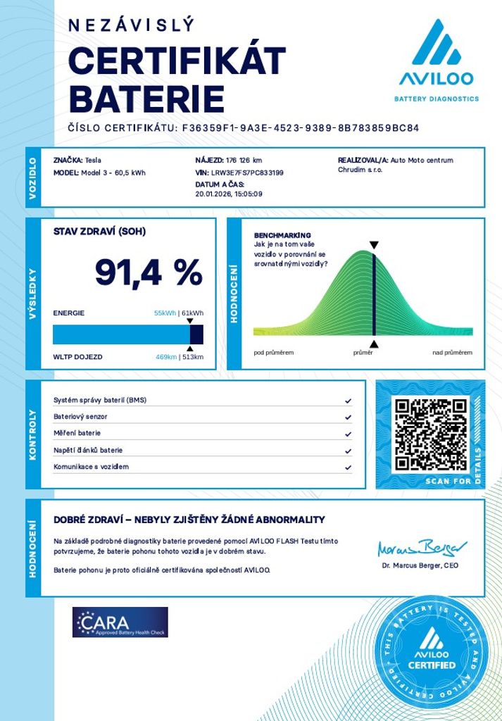 | Doplňující popis: | Tesla Model 3 Standard 208 kW RWD SOH 91, 4% (ODPOČET DPH) - cena uvedena vč. DPH, baterie 60 kWh - LRW3E7FS7PC833199, dovoz: EU, elektro, do provozu: 25.5.2023, najeto: 176126 km, pohon kol: zadní, automatická převodovka, STK do: 11/2027, přední a zadní parkovací senzory, parkovací kamera, přední a zadní vyhřívaná sedadla, procesor AMD RYZEN, BOOM BOX, MATRIX SVĚTLOMETY, WLTP 554 km. *MOŽNOST VYKOUPENÍ VAŠEHO STARÉHO VOZU PROTIÚČTEM* *MOŽNOST VÝHODNÉHO FINANCOVÁNÍ už bez nulové akontace* Pro nezávaznou kalkulaci nás neváhejte kontaktovat. Nutno vždy volat předem! Prohlídky možné i mimo pracovní dobu tel. 732710796 Mates auto. Nejedná se o návrh na uzavření smlouvy (nabídku) dle § 1731 zákona č. 89/2012 Sb., občanský zákoník, ale o nezávaznou nabídku., | |