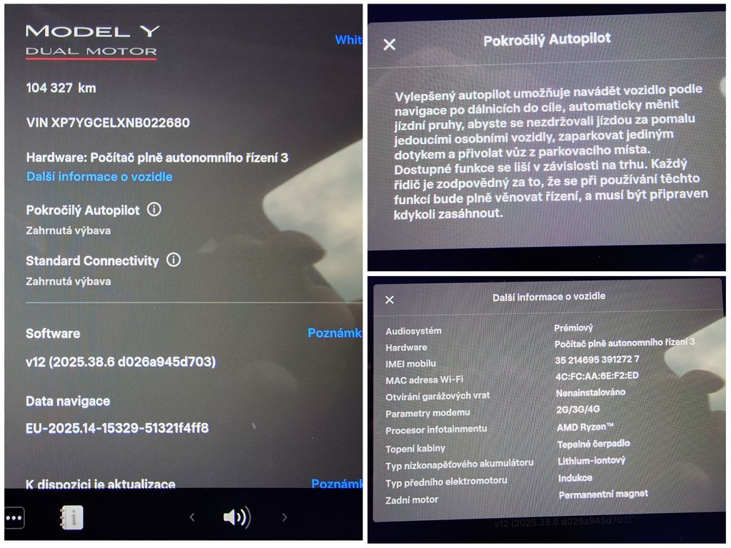 | Doplňující popis: | Tesla Model Y Performance - BERLÍN, EAP 393 kW SOH 90, 3% (ODPOČET DPH) - cena uvedena vč. DPH, baterie 78, 8 kWh, dovoz: Německo, VIN: XP7YGCELXNB022680, elektro, do provozu: 22.9.2022, najeto: 104327 km, pohon kol: 4x4, automatická převodovka, STK do: 9/2026, WLTP 514 km, procesor AMD RYZEN, klimatizace, parkovací kamera, přední a zadní vyhřívaná sedadla, vyhřívaný volant, MATRIX SVĚTLOMETY, EAP - autopilot. Záruka na Akumulátor a hnací ústrojí 8 let nebo po ujetí 192.000 km (podle toho, co nastane dříve).*MOŽNOST VYKOUPENÍ VAŠEHO STARÉHO VOZU PROTIÚČTEM* *MOŽNOST VÝHODNÉHO FINANCOVÁNÍ už bez nulové akontace* Pro nezávaznou kalkulaci nás neváhejte kontaktovat. Nutno vždy volat předem! Prohlídky možné i mimo pracovní dobu tel. 732710796 Mates auto. Nejedná se o návrh na uzavření smlouvy (nabídku) dle § 1731 zákona č. 89/2012 Sb., občanský zákoník, ale o nezávaznou nabídku., | |