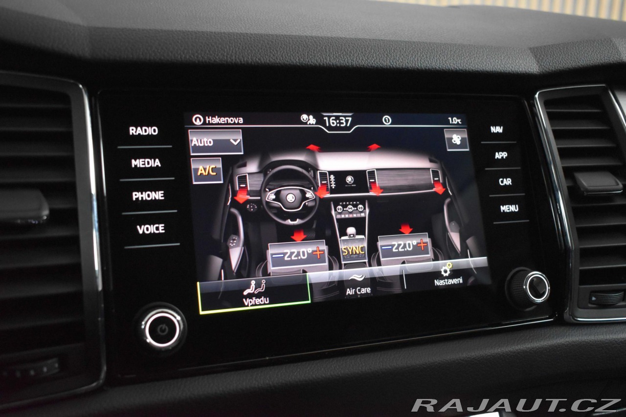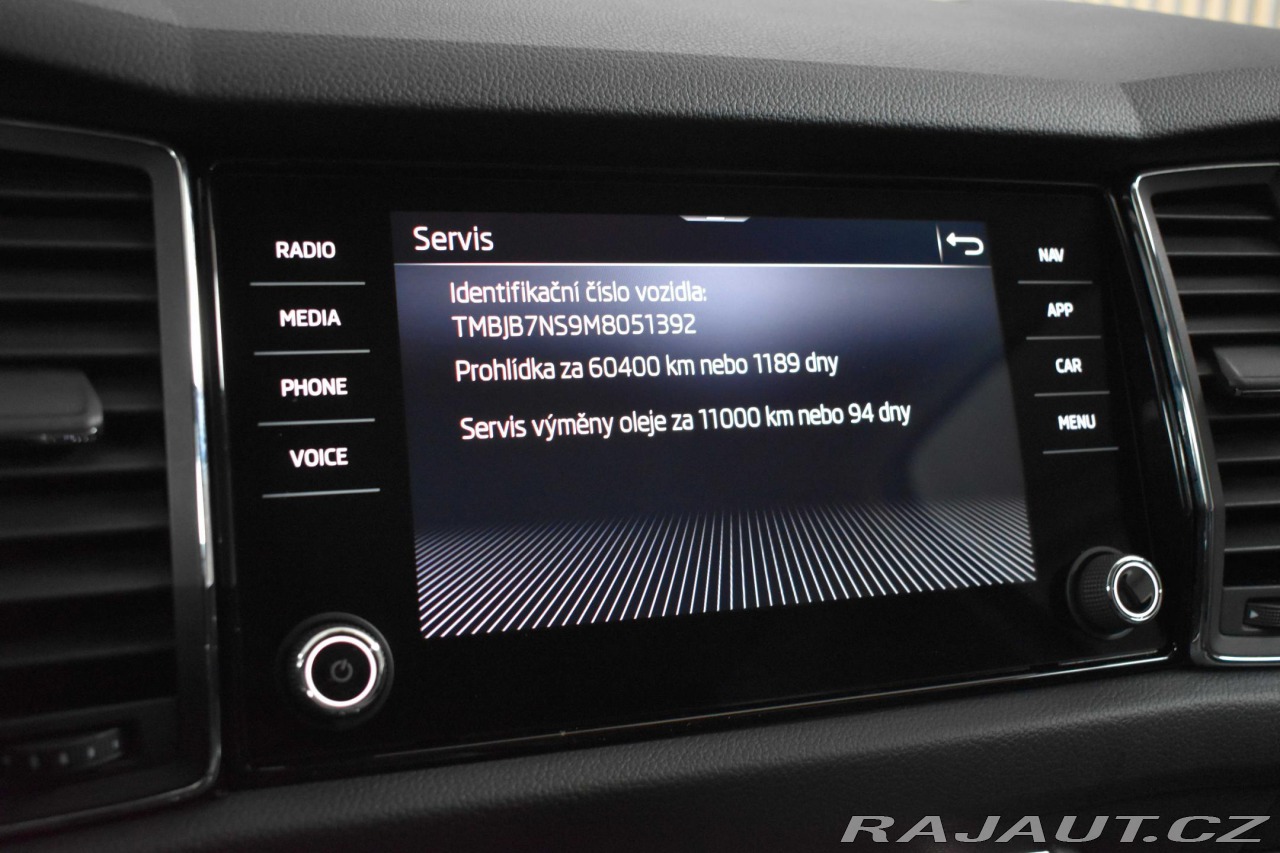 | Nadstandardní výbava: | aut. převodovka, 9x airbag, ABS, stabilizace podvozku (ESP), protiprokluzový systém kol (ASR), nouzové brzdění (PEBS), sledování únavy řidiče, aut. zabrzdění v kopci, posilovač řízení, dvouzónová klimatizace, aut. klimatizace, tempomat, LED denní svícení, alu kola, palubní počítač, dotykové ovládání palubního počítače, elektronická ruční brzda, satelitní navigace, parkovací senzory přední, parkovací senzory zadní, senzor světel, senzor stěračů, nastavitelný volant, multifunkční volant, deaktivace airbagu spolujezdce, hands free, Android Auto, Apple CarPlay, bluetooth, el. okna, dojezdové rezervní kolo, el. sklopná zrcátka, el. zrcátka, samostmívací zrcátka, startování tlačítkem, zaslepení zámků, imobilizér, centrál dálkový, isofix, výškově nastavitelná sedadla, polohovací sedadla, senzor tlaku v pneumatikách, přední světla LED, zadní světla LED, mlhovky, start-stop systém, USB, autorádio, digitální příjem rádia (DAB), venkovní teploměr, vyhřívaná zrcátka, klimatizovaná přihrádka, dělená zadní sedadla, zadní loketní opěrka, zadní stěrač, zatmavená zadní skla, podélný posuv sedadel, výsuvné opěrky hlav, malý kožený paket, | |