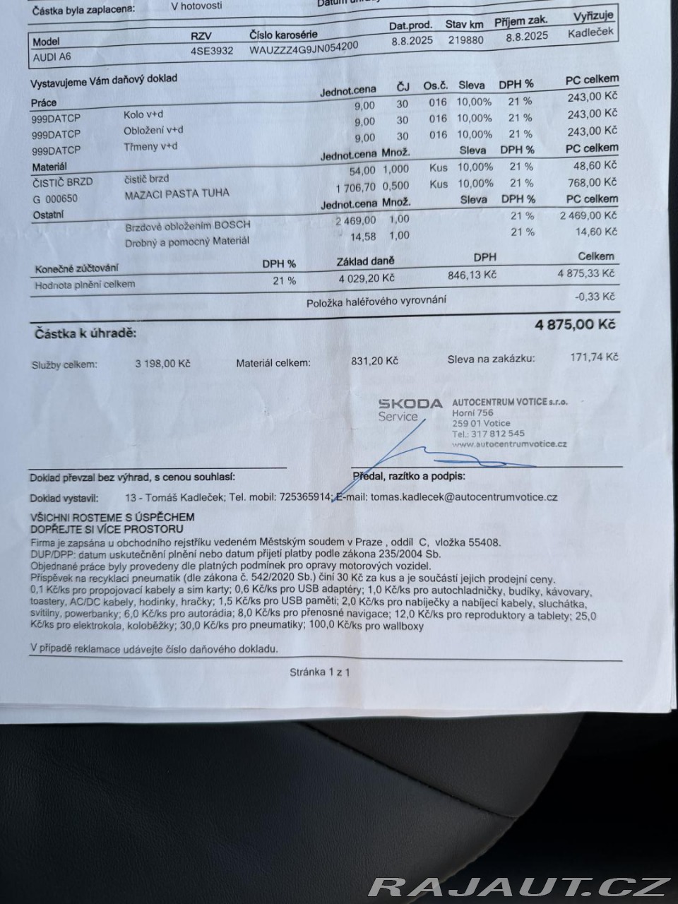 | Doplňující popis: | Možnost dokoupení záruky až na 48 měsíců. 100% garance na počet ujetých kilometrů. Prověřené vozy společností Cebia s možností nahlédnutí do výpisu Cebia Reportu. Dále si také můžete nechat prověřit vůz vlastním mechanikem či autorizovaným servisem. Vůz původem z ČR s pravidelnou servisní historií. V uplynulých dvou letech průběžně po servise za více než 350.000,-kč - čerpadlo vstřiky, výměna vačkových hřídelí, setrvačník, repase převodovky a další. Tato nabídka není návrh na uzavření kupní smlouvy dle zákona 89/2. | |