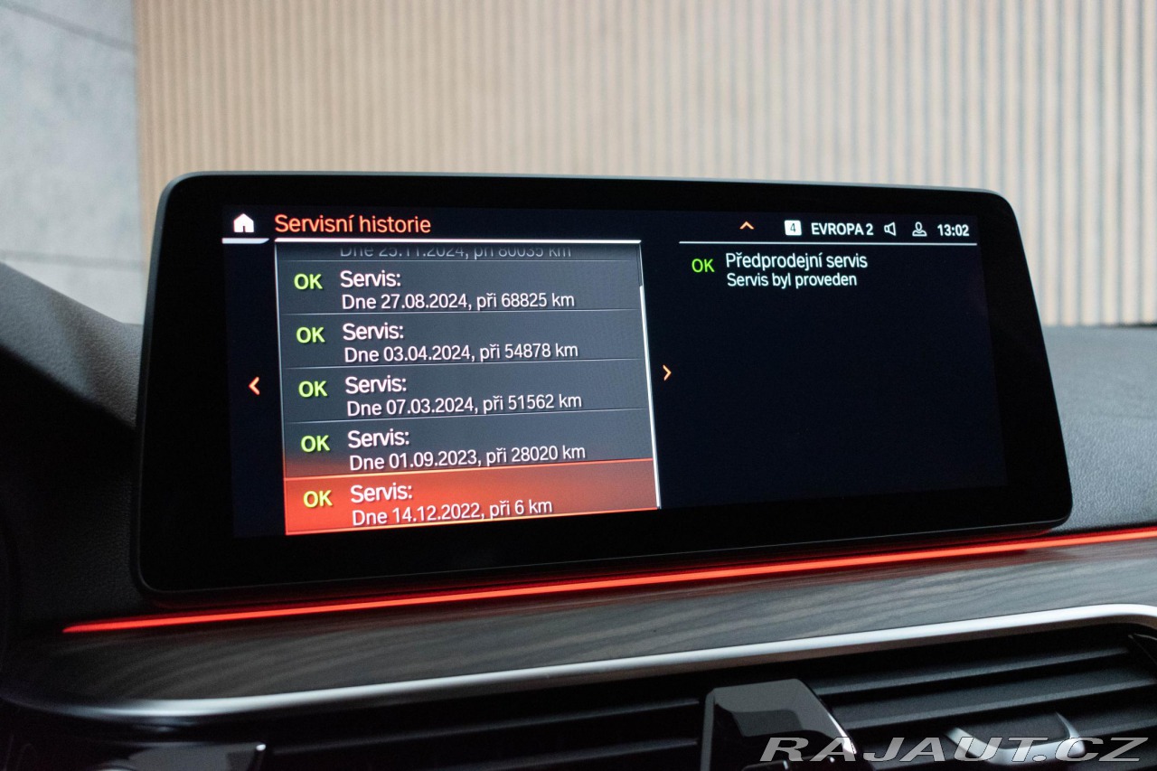 | Doplňující popis: | Vozidlo registrované jako nové v ČR od 1. majitele, s možností odpočtu DPH. Pravidelně servisováno, příští servisní interval za 14 000 km, historie vozidla prověřena společností CEBIA, na vyžádání lze zaslat Cebia report mailem, z volitelné výbavy: M aerodynamický paket, M sportovní paket, Paket pro fixaci nákladu v zavazadlovém prostoru včetně možnosti nastavení úhlu opěradel zadních sedadel, Aktivní ochrana, Driving Assistant Professional, 8stupňová sportovní samočinná převodovka Steptronic včetně řadicích pádel na volantu, Asistent dálkových světlometů, M sportovní brzdy včetně modrých třmenů s označením \"M\", M sportovní podvozek, Parkovací asistent, Dřevěné obložení interiéru Fineline Cove s akcentní lištou Pearl Chrome, Kůže Dakota Cognac s exkluzivním kontrastním prošitím/Black, M sportovní kožený volant, Vyhřívání volantu, Elektricky nastavitelné bederní opěrky předních sedadel, Sportovní přední sedadla včetně el.nastavitelného úhlu opěradla a šířky opěradla, Vyhřívání předních sedadel, M Shadowline černé vysoce lesklé okenní lišty, M Shadowline černé vysoce lesklé podélné střešní nosníky, 4zónová automatická klimatizace, Zvýšená protisluneční ochrana oken (od B-sloupku), HiFi systém – 12 reproduktorů (205 W), Příprava pro mobilní telefon s rozhraním Bluetooth včetně bezdrátového dobíjení. Tato nabídka má pouze informativní charakter a neslouží jako podklad pro uzavření objednávky. STOP CARS s.r.o. si vyhrazuje právo uzavření všech smluvních vztahů písemně. | |
