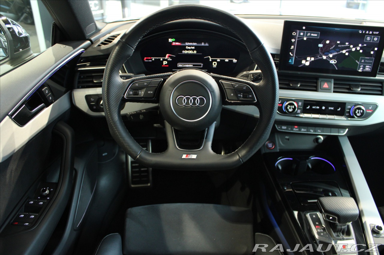 | Doplňující popis: | První majitel, S5 quattro Sportback. Možnost plnohodnotné prodloužené záruky na 1 až 4 roky. Kompletní autorizovaná servisní historie. Poslední pravidelná servis ve 129542 km. Metalické lakování Mythos Black doplňuje Černý optický paket Plus, nádherná 20' originální litá kola Audi Sport a černě lakované brzdiče. Sportovní podvozek S. Matrix LED světlomety s laserovým světlem Audi a asistentem dálkových světel. 360° kamerový systém Area View a Asistent parkování. Tempomat. Active Lane Assist a Pre Sense. Rozpoznávání dopravních značek. Doporučení přestávky. Audi virtual cockpit Plus. Polokožený interiér s alcantarou Dinamica. Sportovní elektronicky nastavitelná vyhřívaná sedadla s masáží. Komfortní třízónová klimatizace. Nezávislé topení. Konturové ambientní osvětlení Plus. Pedály a opěrka nohy z nerezové oceli. Bezdrátové nabíjení pro smartphone. Audi Smartphone Interface (Android Auto / Apple CarPlay). Kompletní specifikaci výbavy, veškeré informace o historii vozu a detailní fotografie Vám rádi zašleme na vyžádání., | |
