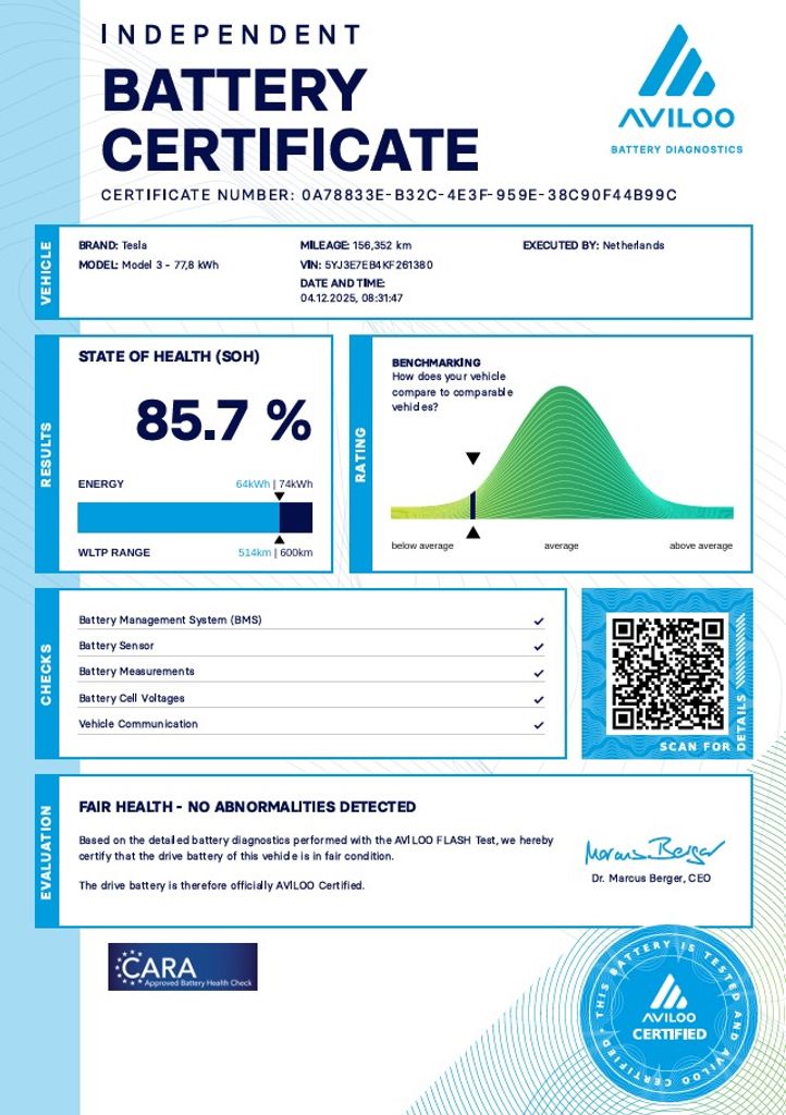 | Doplňující popis: | Tesla Model 3 Dual Motor Long Range 366 kW SOH 85, 7 % (ODPOČET DPH) - cena uvedena vč. DPH, baterie 77, 8 kWh - 5YJ3E7EB4KF261380, dovoz: EU, elektro, do provozu: 6.5.2019, najeto: 156357 km, pohon kol: 4x4, automatická převodovka, STK do: 1/2028, FSD AUTOPILOT - PLNĚ AUTONOMNÍ ŘÍZENÍ, parkovací kamera, procesor INTEL ATOM, WLTP 560 km, tepelné čerpadlo, vyhřívaná přední a zadní sedadla. Záruka na Akumulátor a hnací ústrojí 8 let nebo po ujetí 192.000 km (podle toho, co nastane dříve). *MOŽNOST VYKOUPENÍ VAŠEHO STARÉHO VOZU PROTIÚČTEM* *MOŽNOST VÝHODNÉHO FINANCOVÁNÍ už bez nulové akontace* Pro nezávaznou kalkulaci nás neváhejte kontaktovat. Nutno vždy volat předem! Prohlídky možné i mimo pracovní dobu tel. 732710796 Mates auto. Nejedná se o návrh na uzavření smlouvy (nabídku) dle § 1731 zákona č. 89/2012 Sb., občanský zákoník, ale o nezávaznou nabídku., | |