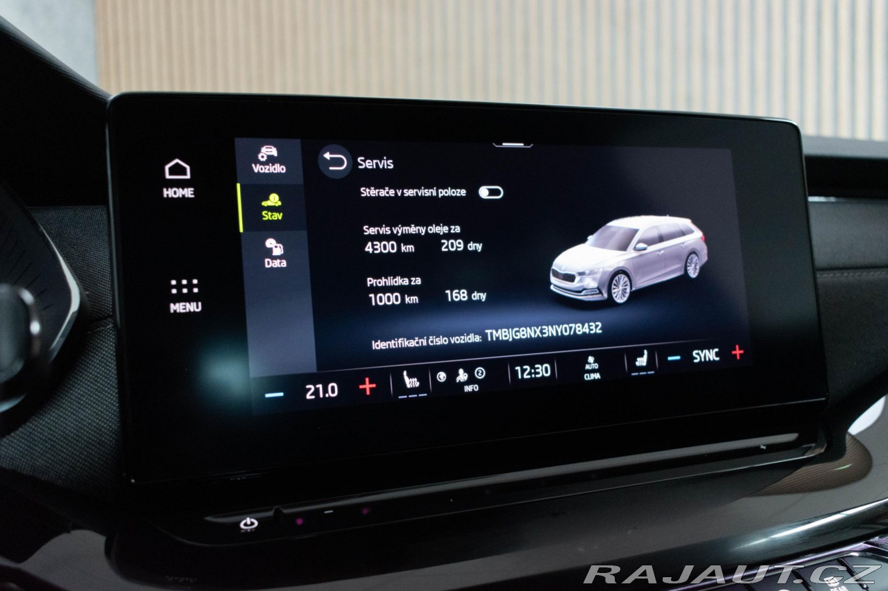 | Nadstandardní výbava: | manuální převodovka, 6 rychlostních stupňů, 7x airbag, ABS, stabilizace podvozku (ESP), protiprokluzový systém kol (ASR), nouzové brzdění (PEBS), hlídání jízdního pruhu, sledování únavy řidiče, aut. zabrzdění v kopci, posilovač řízení, dvouzónová klimatizace, aut. klimatizace, adaptivní tempomat, tempomat, LED matrixové světlomety, LED denní svícení, automatické přepínání dálkových světel, alu kola, plní 'EURO VI', palubní počítač, hlasové ovládání palubního počítače, dotykové ovládání palubního počítače, digitální přístrojový štít, volba jízdního režimu, elektronická ruční brzda, parkovací senzory přední, parkovací senzory zadní, parkovací kamera, bezklíčové odemykání, senzor světel, senzor stěračů, nastavitelný volant, multifunkční volant, vyhřívaný volant, deaktivace airbagu spolujezdce, hands free, Android Auto, Apple CarPlay, bezdrátová nabíječka mobilních telefonů, bluetooth, el. okna, dojezdové rezervní kolo, el. sklopná zrcátka, el. zrcátka, samostmívací zrcátka, startování tlačítkem, zaslepení zámků, imobilizér, centrál dálkový, isofix, ambientní osvětlení interiéru, vyhřívaná sedadla, výškově nastavitelná sedadla, polohovací sedadla, senzor tlaku v pneumatikách, přední světla LED, zadní světla LED, mlhovky, start-stop systém, USB, autorádio, digitální příjem rádia (DAB), venkovní teploměr, vyhřívaná zrcátka, vyhřívané přední sklo, klimatizovaná přihrádka, dělená zadní sedadla, zadní loketní opěrka, zadní stěrač, zatmavená zadní skla, roletky na zadních oknech, přední pohon, podélný posuv sedadel, výsuvné opěrky hlav, digitální přístrojová deska, malý kožený paket, | |